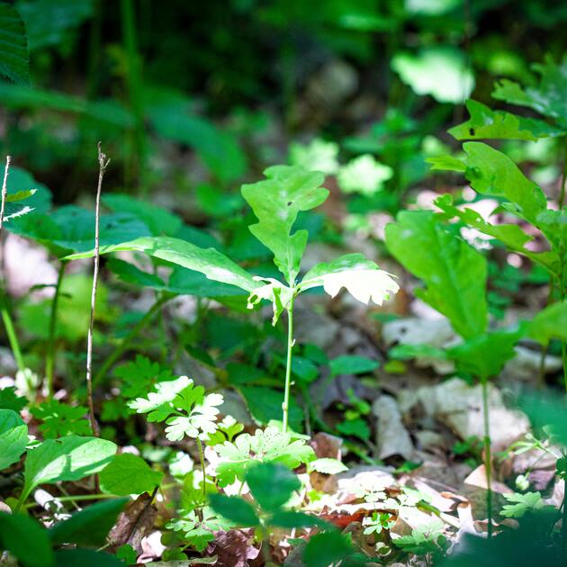 Auf bis zu 0,3 ha großen, von der Spätblühenden Traubenkirsche befreiten Flächen werden Eichen und andere Lichtbaumarten gepflanzt, um Samenbäume für zukünftige Generationen zu schaffen. Zwischen den Baumgruppen bleiben Freiräume, die die Ansiedlung weiterer Baumarten fördern. Ausgewählte Bäume und aufkommende Naturverjüngung werden gepflegt, um einen lichten, klimastabilen Eichen-Mischwald zu entwickeln.