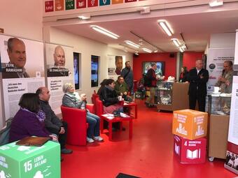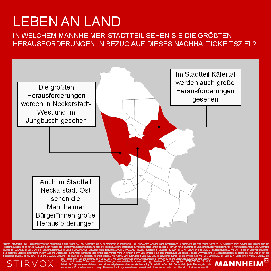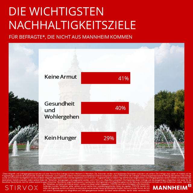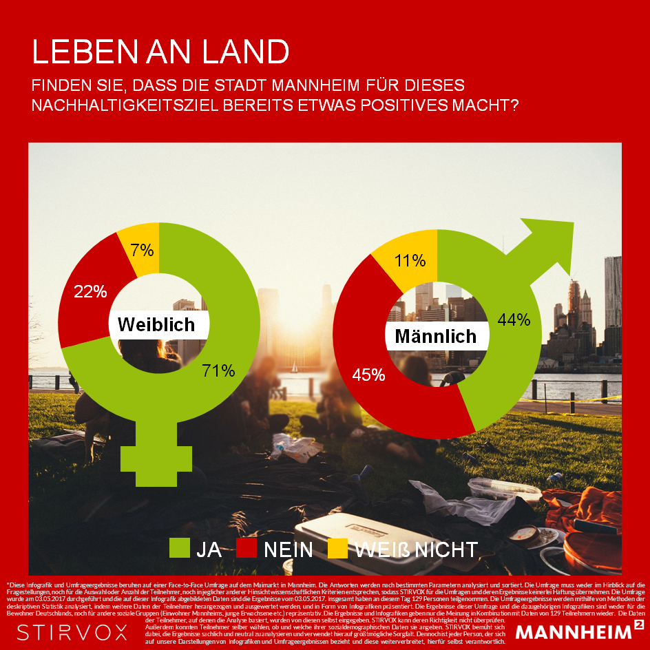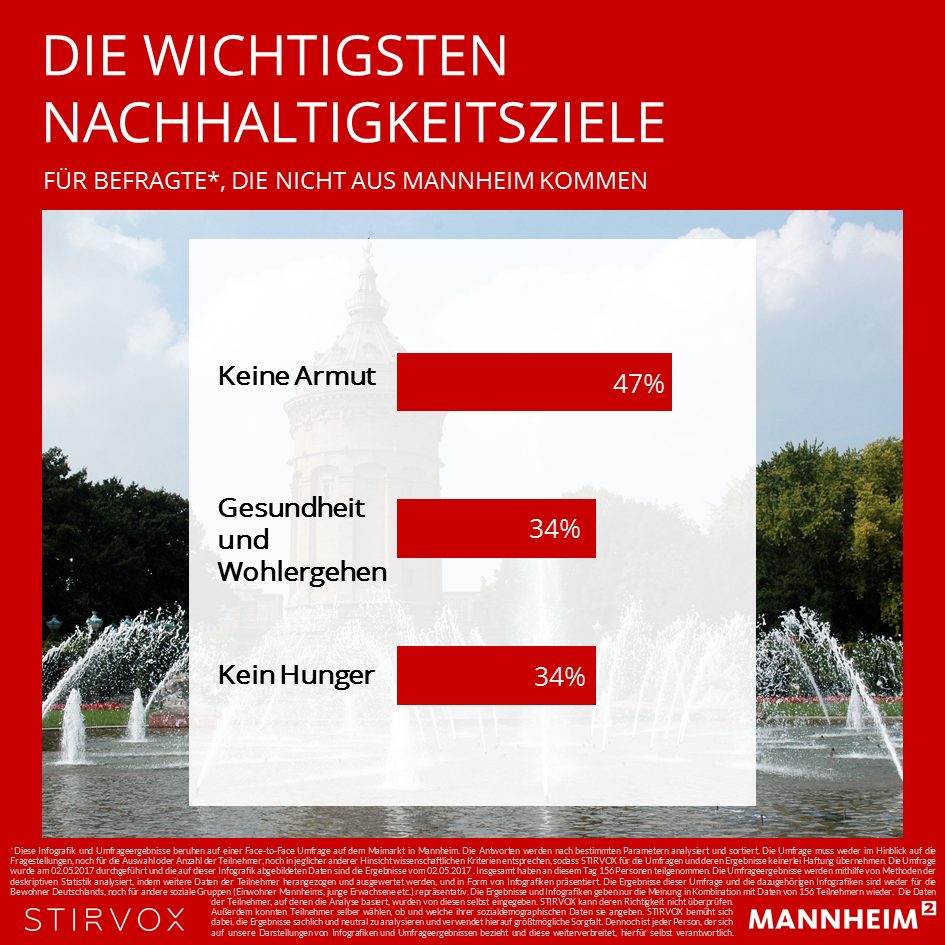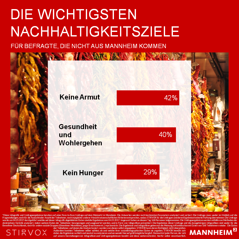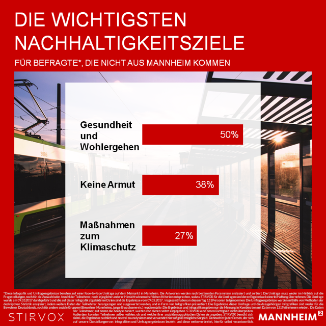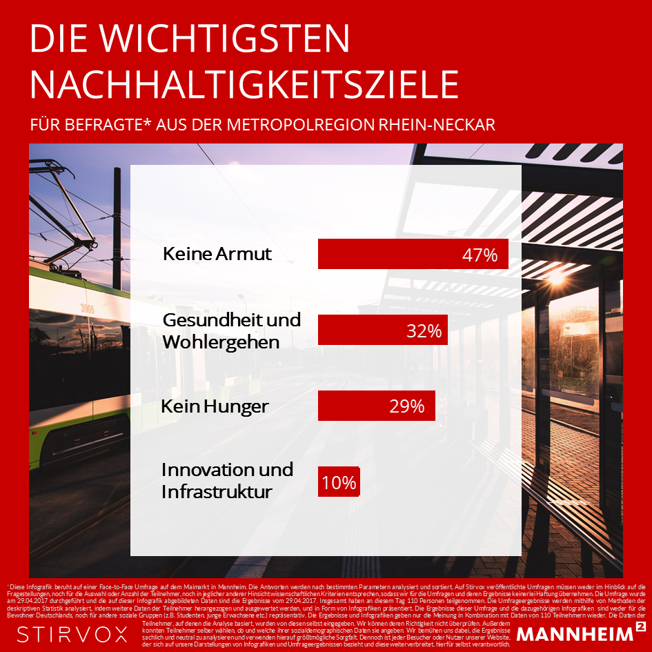 Eine täglich auf dem Maimarktgelände stattfindende Tablet-Umfrage zur Agenda 2030 sowie eine Postkartenumfrage und ein Gewinnspiel zu den Sustainable Development Goals am Stand machten das Themenfeld Nachhaltigkeit zum zentralen Gesprächsgegenstand. Die täglichen Interviews mit Expertinnen und Experten aus der Verwaltung und deren externen Umfeld beleuchteten diverse Nachhaltigkeitsfacetten einer Stadt, darunter den Klimaschutz, die öffentliche Beschaffung, das Grün in der Stadt und auch neue Formen des Wohnens und Zusammenlebens.