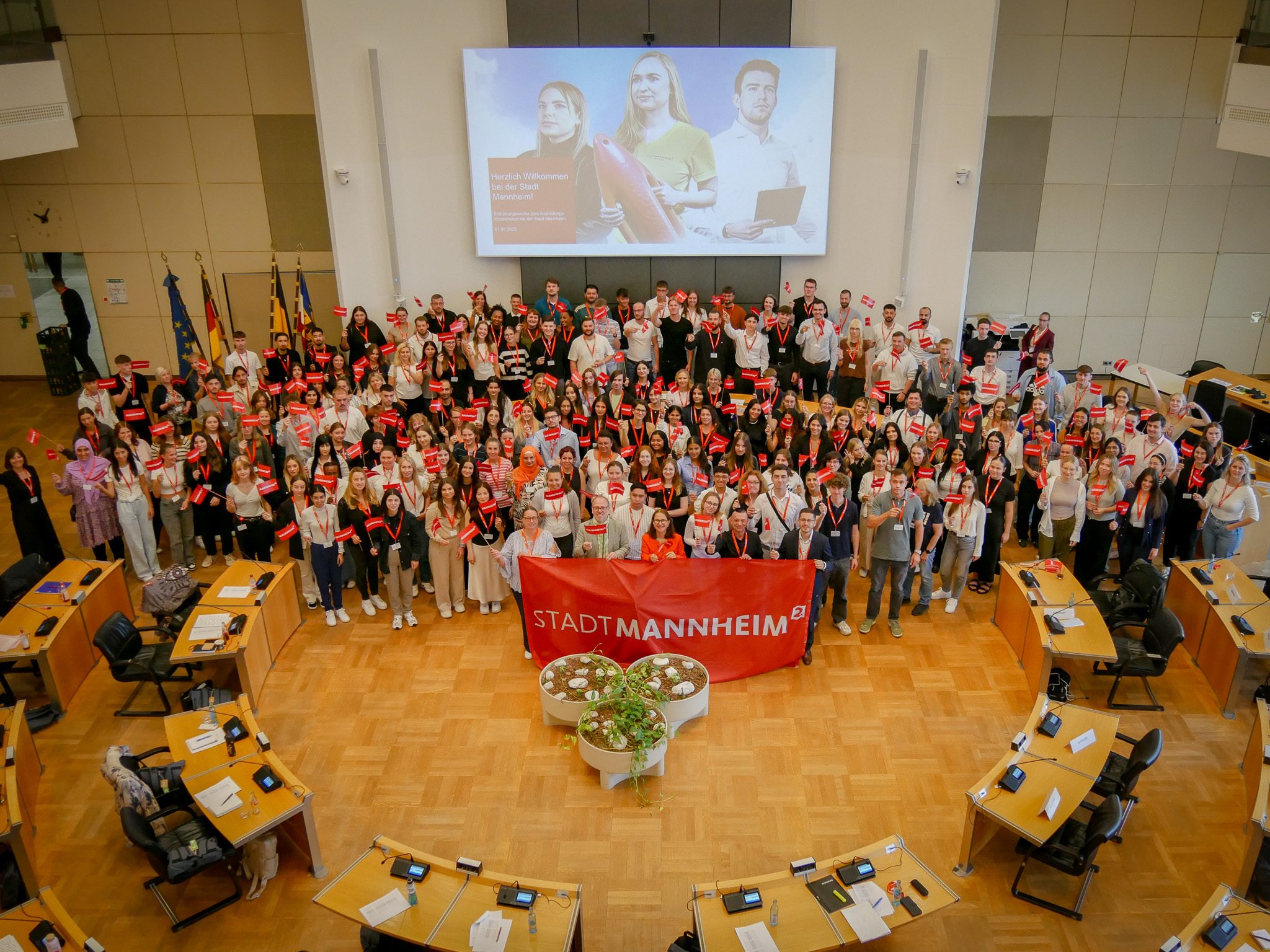 Rund 185 neue Auszubildende, Studierende und Anerkennungspraktikant*innen beginnen heute (1. September 2025) ihre berufliche Laufbahn bei der Stadt Mannheim. Mit der hohen Zahl an Neueinstellungen bestätigt die Stadt Mannheim erneut ihre Stellung als eine der größten Arbeitgeberinnen der Metropolregion Rhein-Neckar. Rund 3.000 Ausbildungsinteressierte hatten sich für den Einstellungsjahrgang 2025 bei der Stadt beworben.