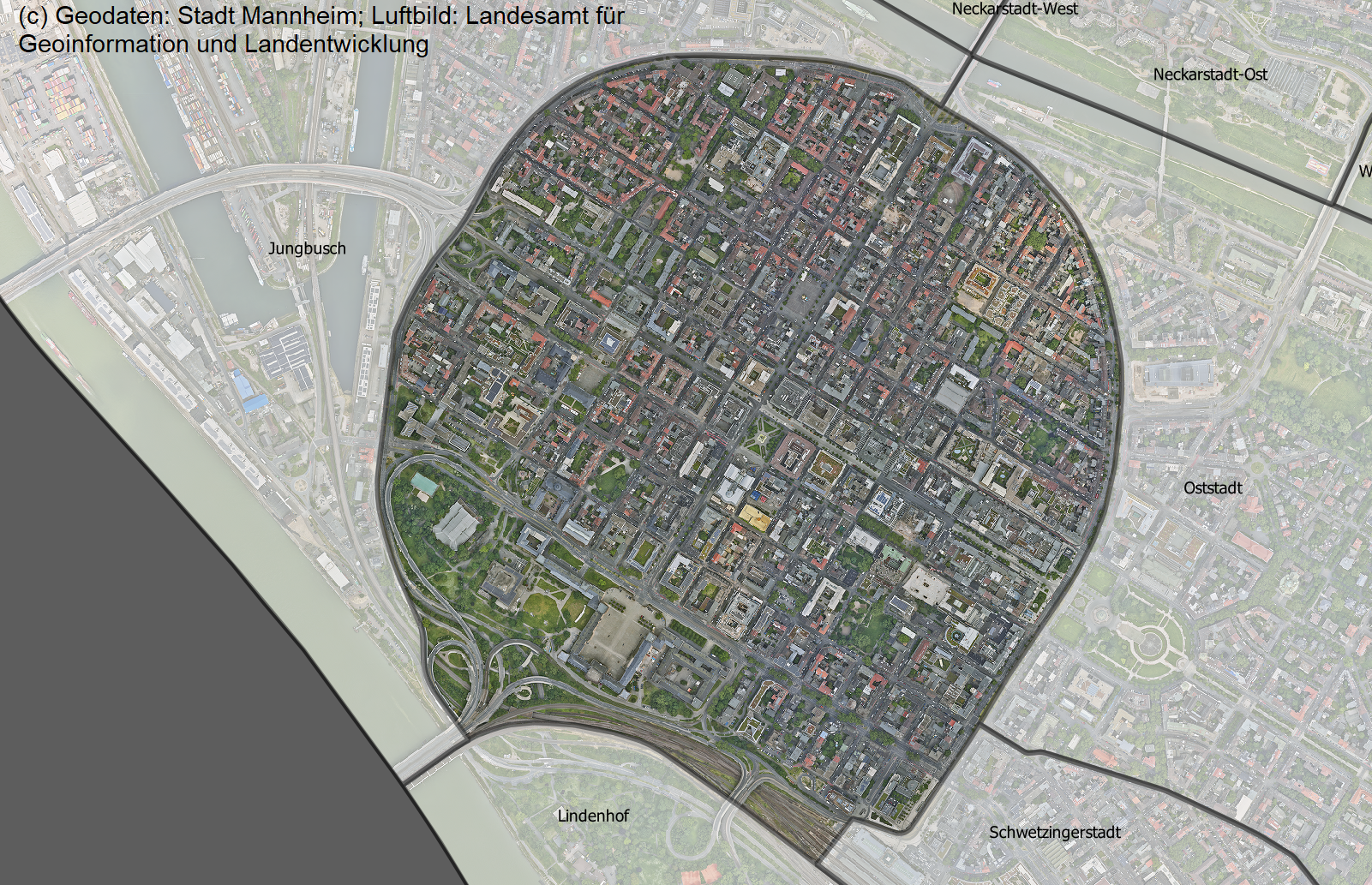 • Bildet zusammen mit dem Stadtteil Jungbusch den Stadtbezirk Innenstadt/Jungbusch (-> Die Innenstadt im Stadtplan)
