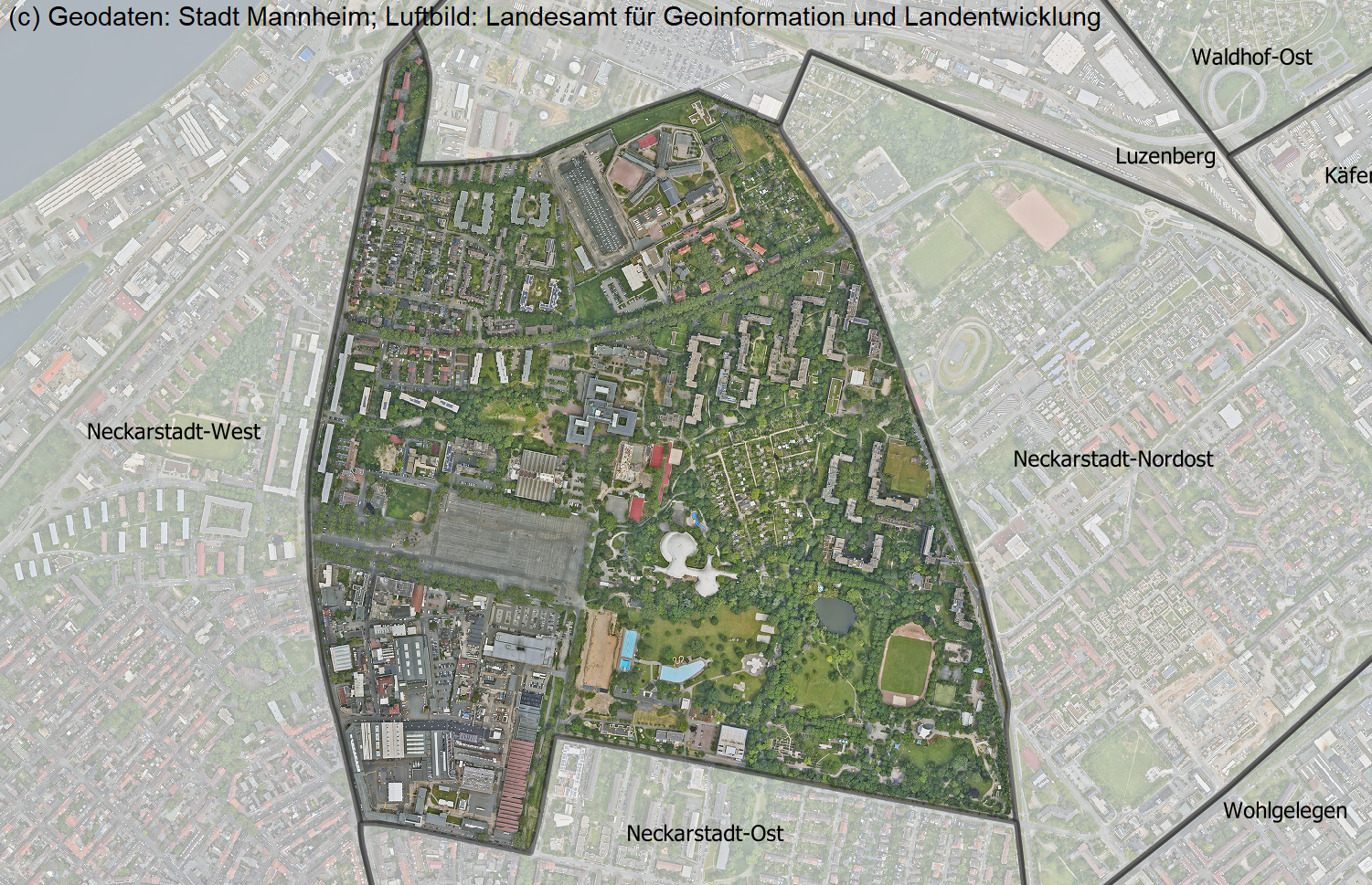 - bildet zusammen mit den Stadtteilen Neckarstadt-Ost, Neckarstadt-Nordost und Wohlgelegen den Stadtbezirk Neckarstadt-Ost (-> Herzogenried im Stadtplan)