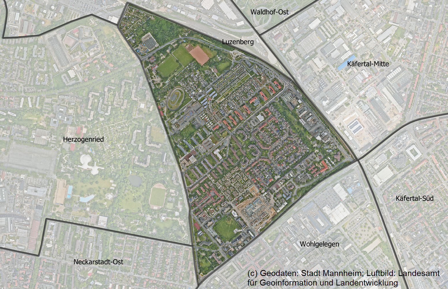 - bildet zusammen mit den Stadtteilen Neckarstadt-Ost, Herzogenried und Wohlgelegen den Stadtbezirk Neckarstadt-Ost (-> Die Neckarstadt-Nordost im Stadtplan)