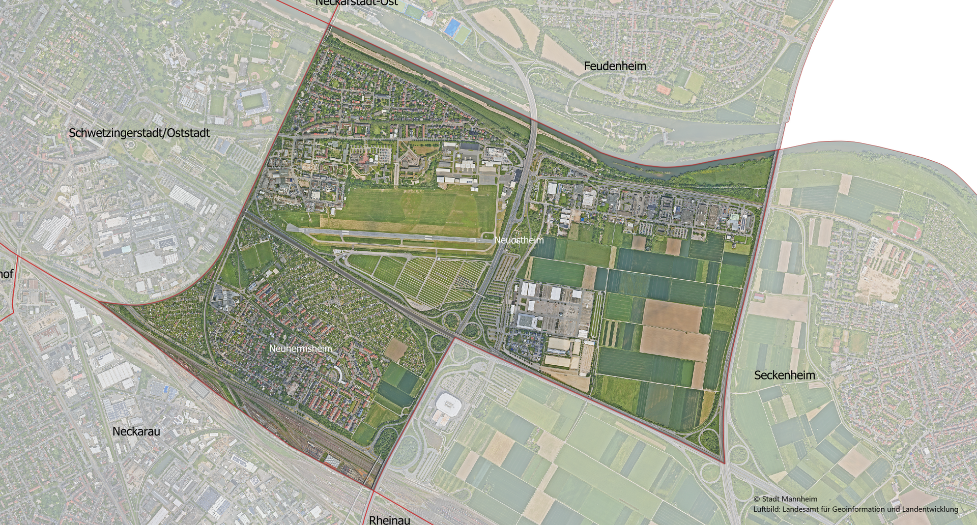 - Stadtbezirk mit zwei Stadtteilen (Neuostheim und Neuhermsheim) (-> Der Stadtbezirk Neuostheim/Neuhermsheim im Stadtplan)