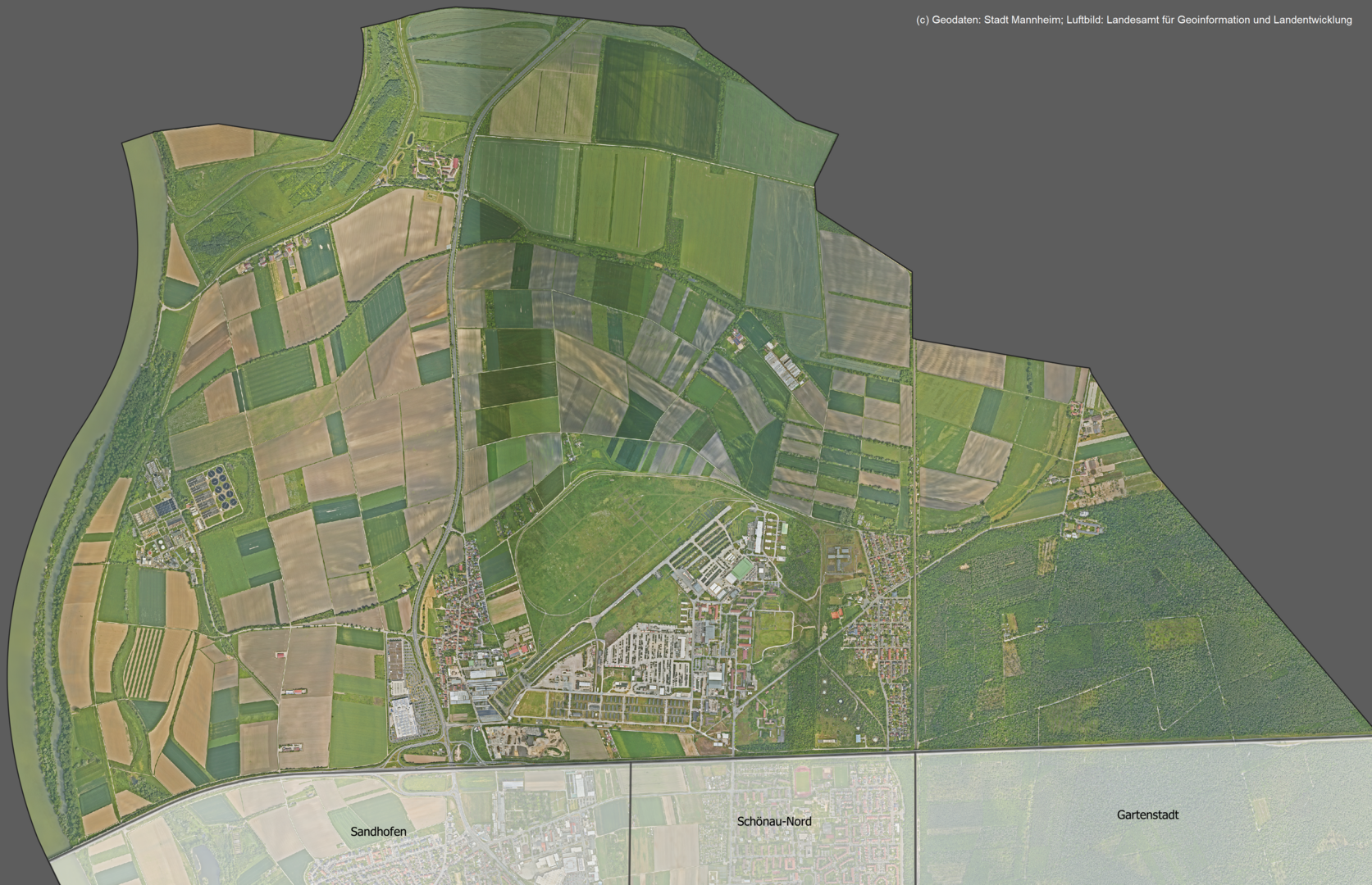 - Größe ca. 20,5 km² - entspricht etwa 2.930 Fußballfeldern und macht etwa 14,1 Prozent der Gesamtfläche Mannheims aus. Flächenmäßig ist Sandhofen-Nord der größte Stadtteil. 12 Prozent der Fläche des Stadtteils sind versiegelt.