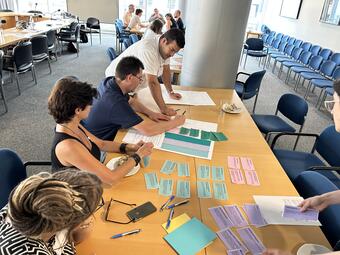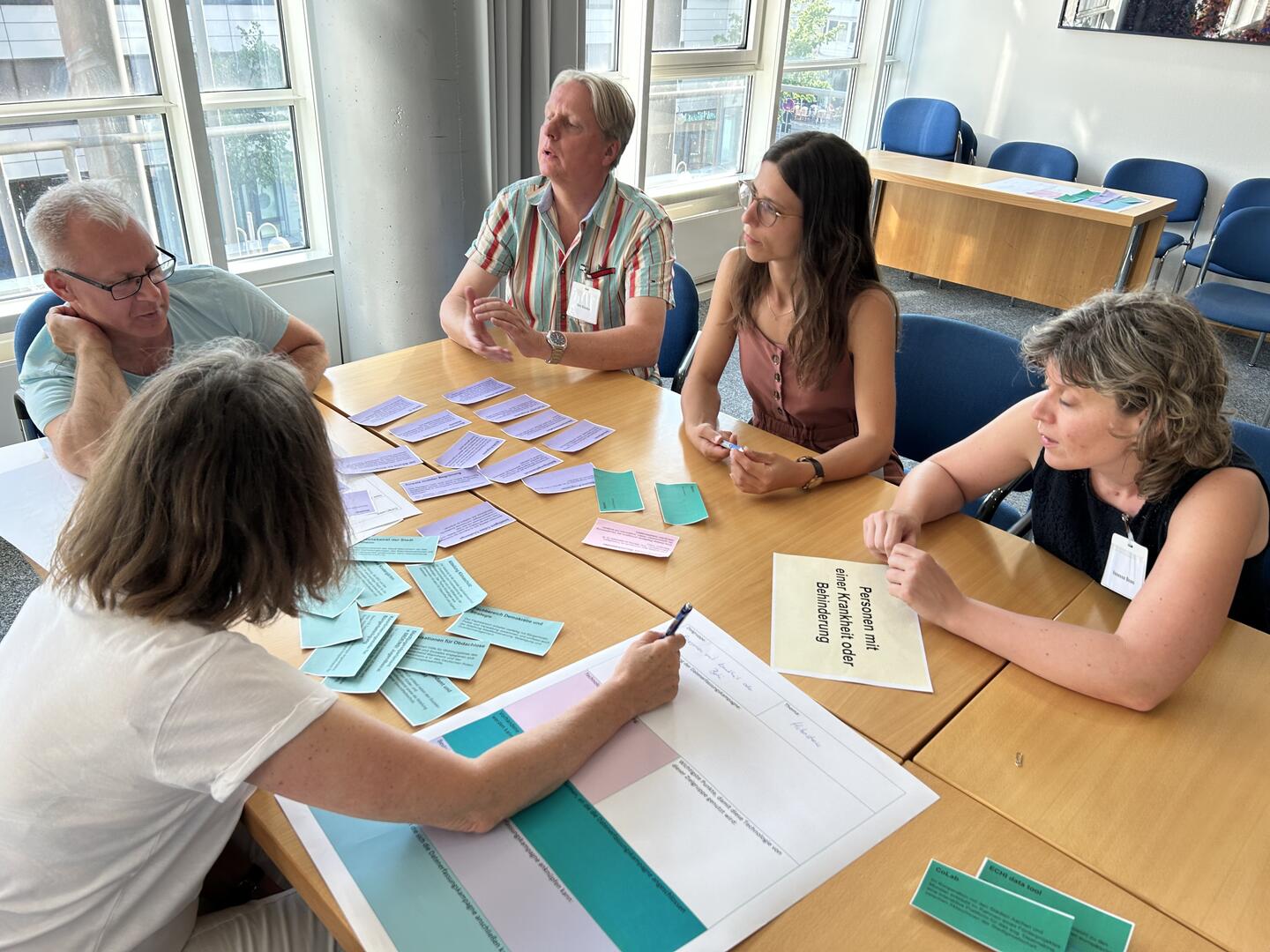 In einem Auftakt-Workshop am 23.06.2023 kamen Vertreter:innen der Bürgerschaft, der Universität Mannheim, privater Unternehmen und der Stadtverwaltung im Stadthaus zusammen, um sich gemeinsam möglicher lokaler Ausgestaltungen des Projekts zu nähern – Fragestellung: Wie können verschiedene Bürgergruppen in die Datenerfassungskampagnen eingebunden werden, um das städtische Baumkataster zu erweitern und den Hitzestress in Mannheim zu mindern? Durch unterschiedliche Übungen und Gruppenaufgaben wurden in diesem Rahmen gemeinsam Personen-Profile der Zielgruppen und Strategien für die Kampagnen entwickelt.