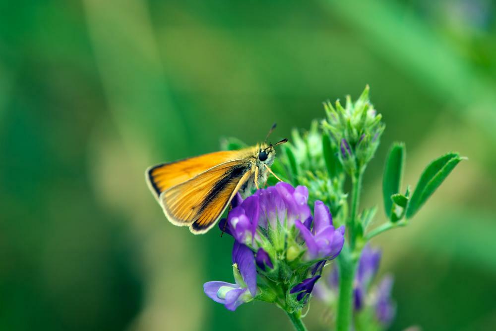- Hohe Pflanzen wie Luzerne dienen als Deckung gegen Fressfeinde