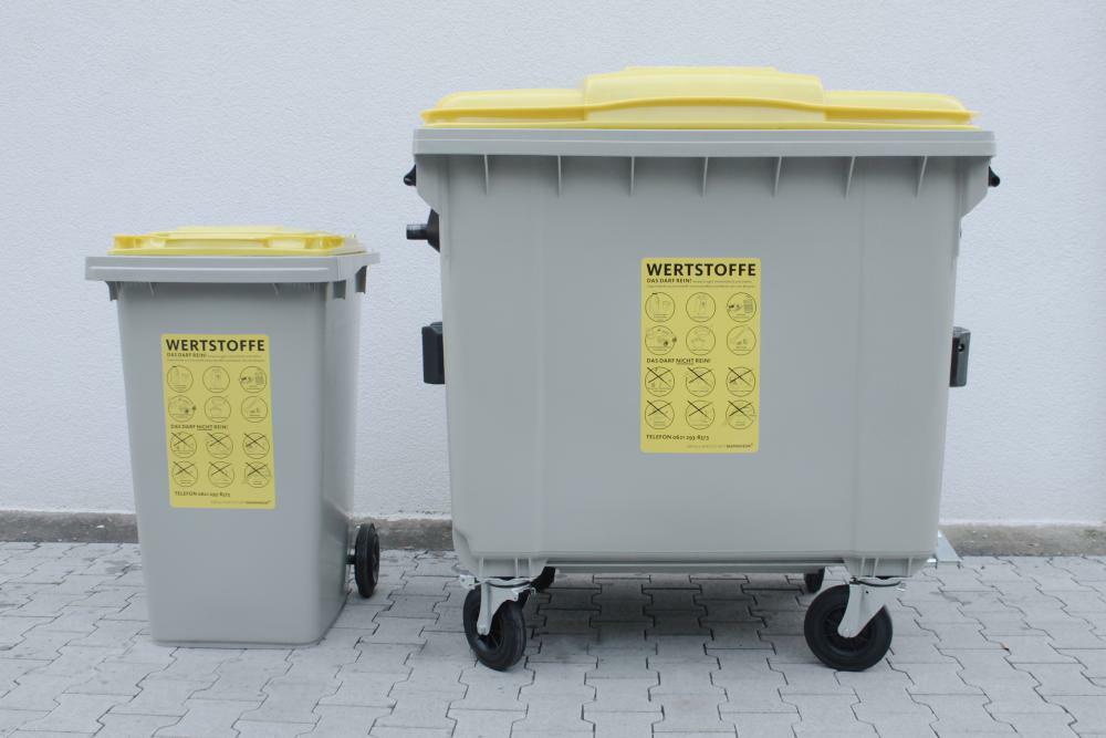 • Wichtiger Hinweis zur Wertstofftonne: Änderungswünsche müssen beim zuständigen Entsorger beantragt werden. Den für Sie zuständigen Entsorger finden Sie auf dem Aufkleber Ihrer Wertstofftonne.