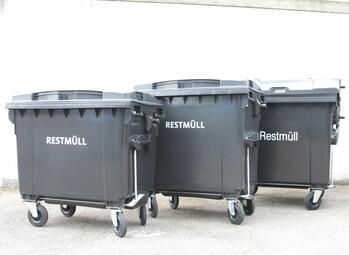 - Die Restmülltonne gibt es in den Größen 60-, 80- , 120-, 240-, 660-, 770- und 1.100-Liter.