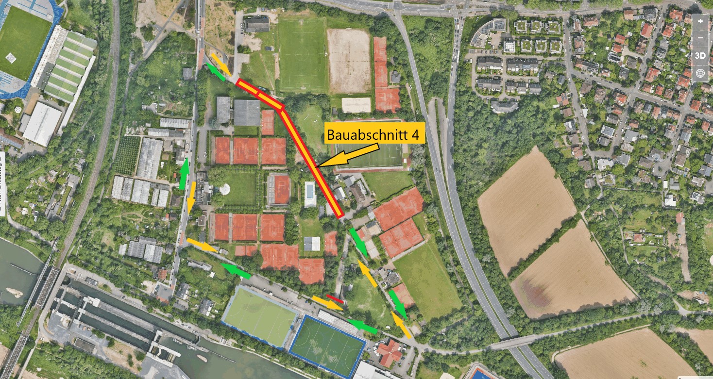 Je nach Bauabschnitt variierende Umleitungen für den MIV (motorisierten Individualverkehr), sowie den Fuß- und Radverkehr.Pressemitteilung vom 1. August 2025