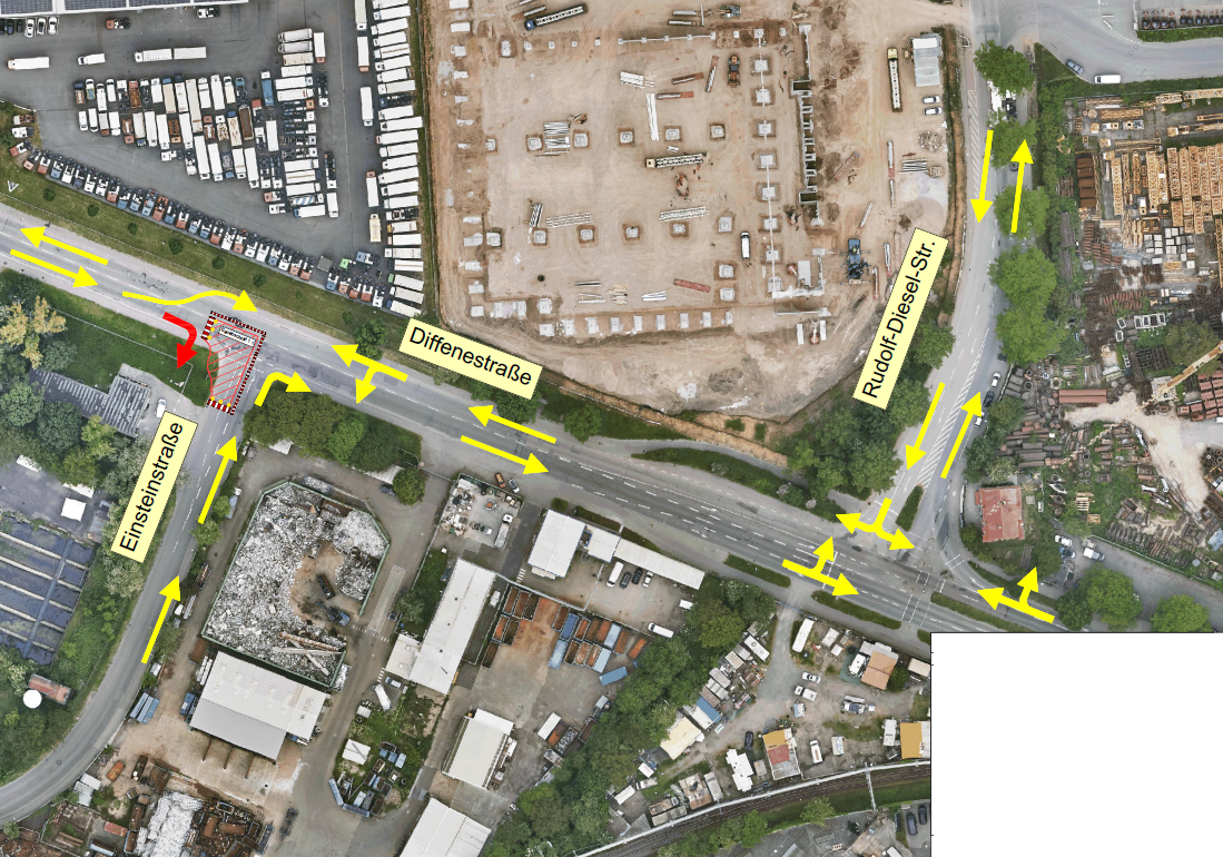 Verkehrseinschränkungen: Variierende Verkehrsbeeinträchtigungen, je nach Bauphase; Umleitungsbeschilderungen werden aufgestellt