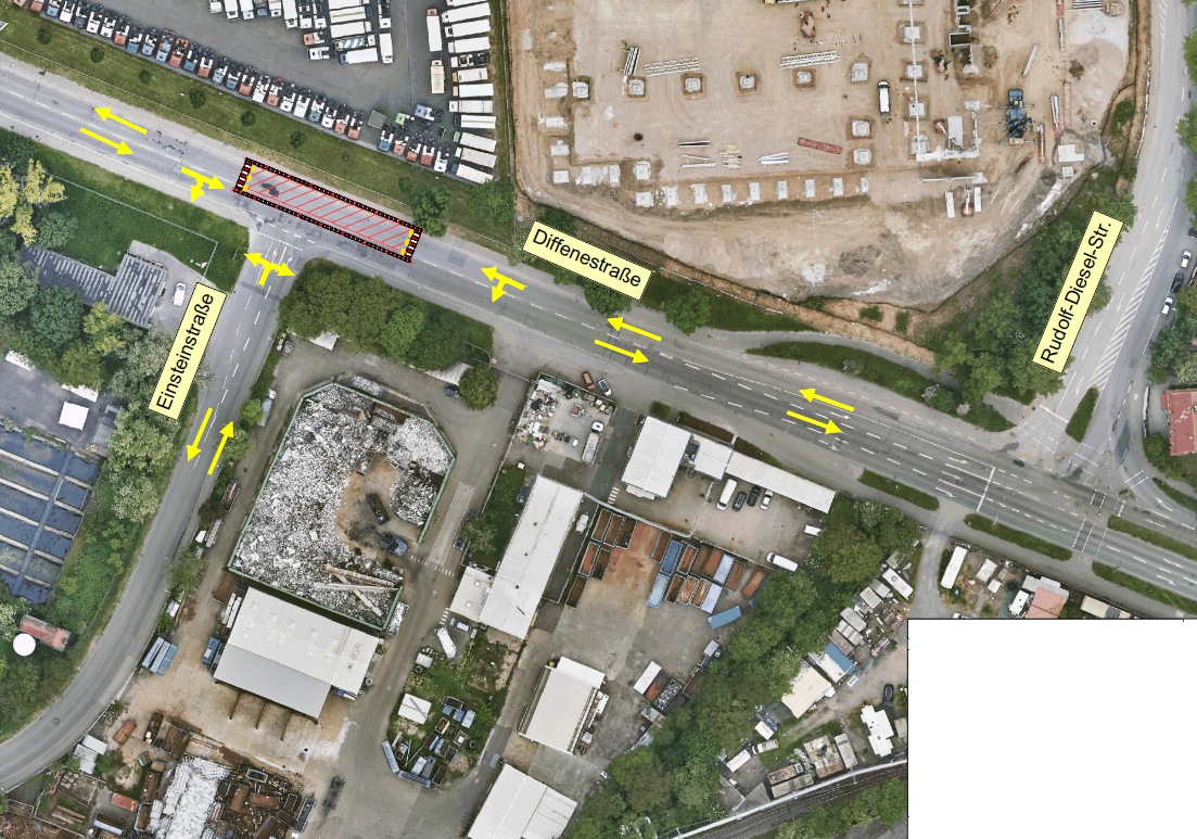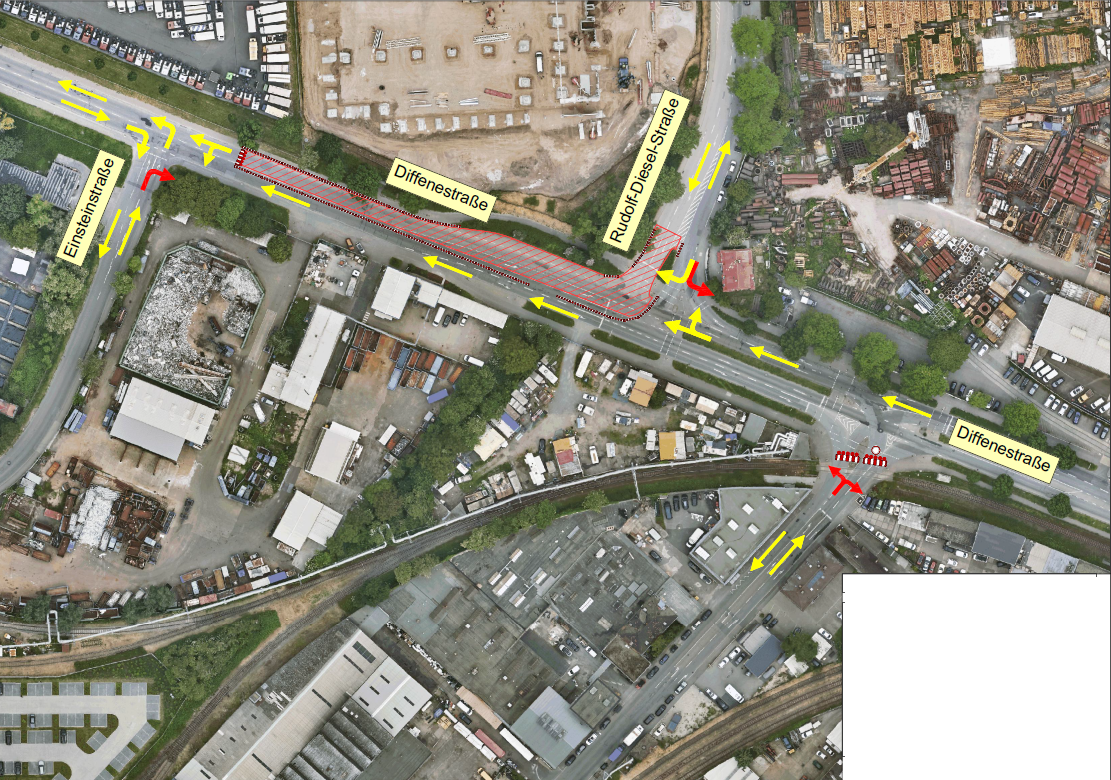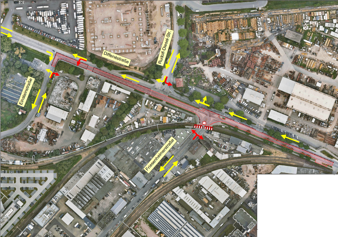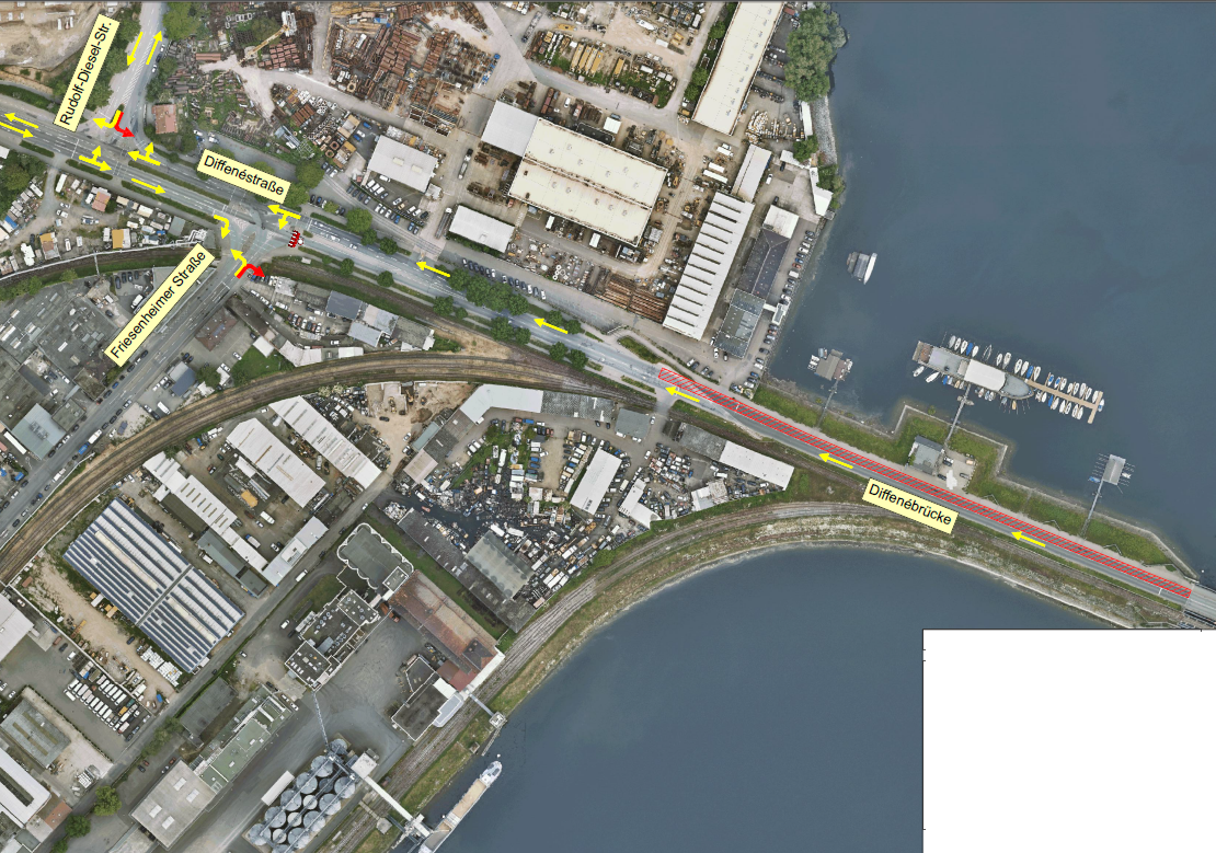 Verkehrseinschränkungen: variierende Verkehrsbeeinträchtigungen je nach Bauphase (siehe Pressemitteilung); Sperrung der Straße für den motorisierten Individualverkehr während des ersten Bauabschnitts