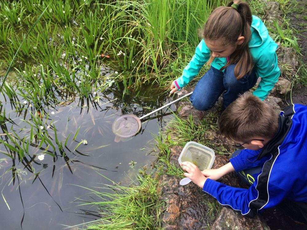 Wir verbringen mit einer Klasse einen Vormittag an einem Gewässer. Dort erkunden wir mit den Kindern den Lebensraum Wasser, indem wir Tiere keschern, beobachten und bestimmen. Danach werden die Tiere wieder freigelassen. Wir legen vor allem Wert darauf, dass die Kinder mit den Tieren sorgfältig umgehen und ihnen keinen Schaden zufügen. Ziel ist es, dass die Kinder ein Bewusstsein für das faszinierende Leben in unserer Natur entwickeln.