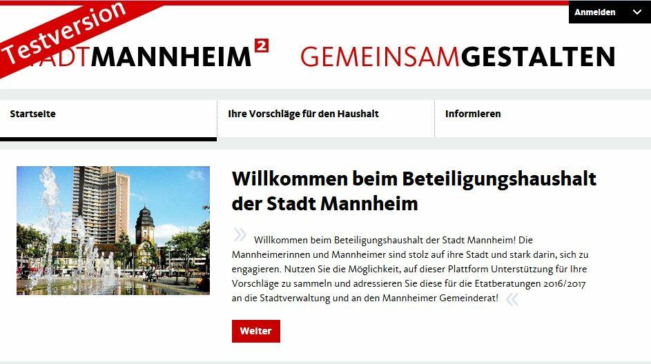 Der Beteiligungshaushalt startete am 8. Juni, bis 28. Juni war es möglich, Vorschläge einzustellen. Grundlage war ein Beschluss des Gemeinderats vom 17. März 2015, einen Beteiligungshaushalt, auch Bürgerhaushalt genannt, einzuführen. Erstmals hatten alle Einwohnerinnen und Einwohner Mannheims die Möglichkeit, ihre Ideen für ihre Stadt in die Planungen des städtischen Haushalts einzubringen. Das Wissen, die Wünsche und die Kreativität aller hier lebenden Menschen konnten so in die Beratungen für den Haushalt 2016/2017 einfließen.