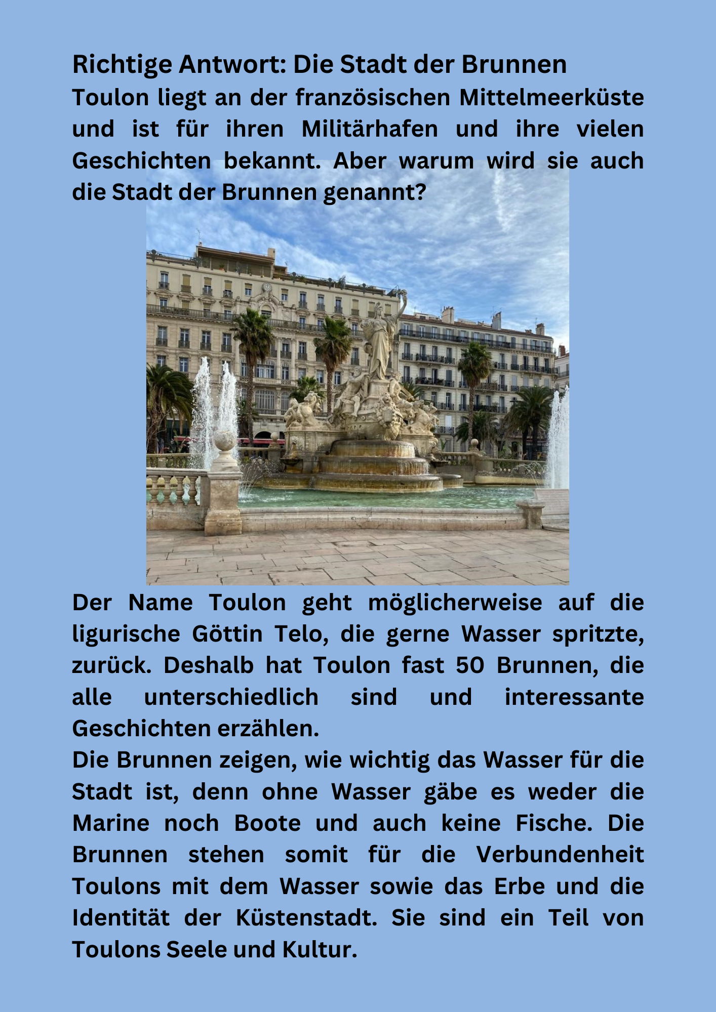 Wie wird Toulon noch genannt? Stadt der Türme oder Stadt der Brunnen?
