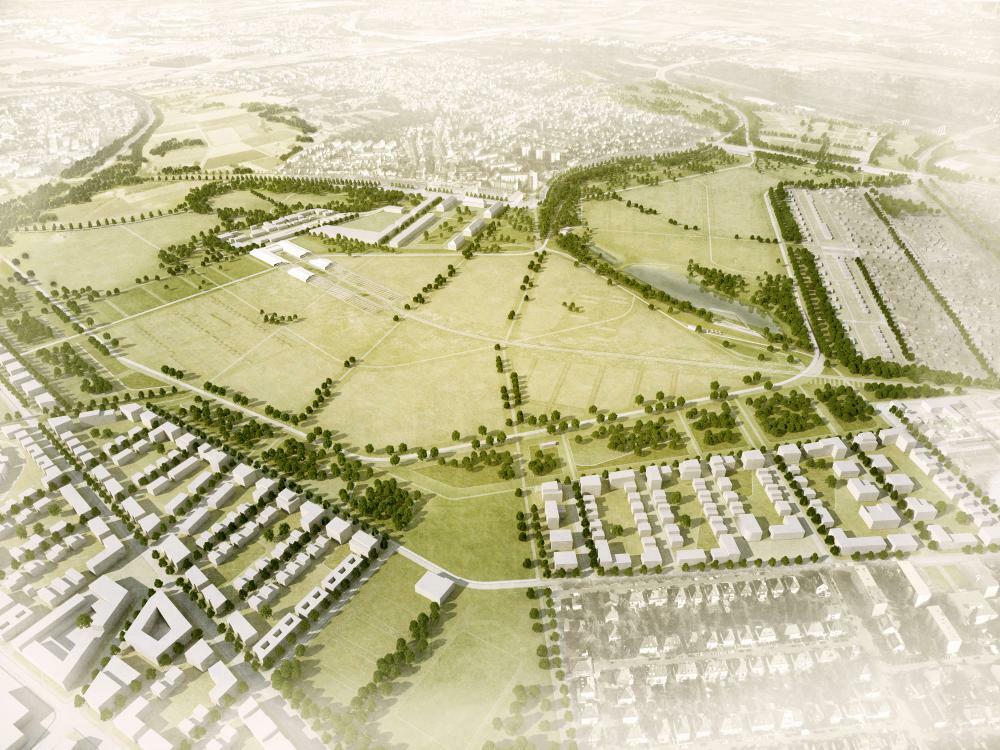 Die Realisierung des Grünzugs Nordost ist der erste Schritt zur Umsetzung dieser gesamtstädtischen Vision. Die Spinelli Barracks, die zurzeit noch eine unüberwindbare Barriere im Grünzug Nordost darstellen, werden zurückgebaut und als Freifläche in den Grünzug integriert. Die Bundesgartenschau 2023 fungiert als Impulsgeber zur Realisierung des Grünzugs Nordost und des übergeordneten Freiraumsystems.