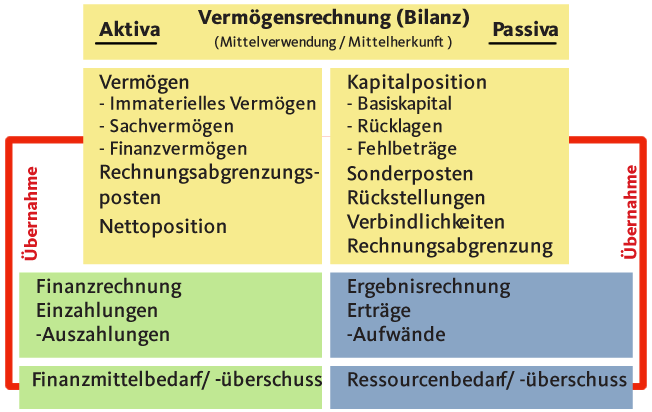Entspricht der Bilanz von Unternehmen. Hier werden die Verwendung des städtischen Kapitals und die Herkunft der Mittel gegenübergestellt. So wird das Gesamtvermögen der Stadt erkennbar.