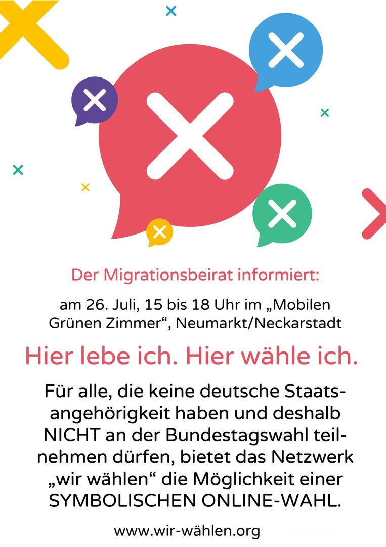 Wie vor der Bundestagswahl 2021 organisiert der Migrationsbeirat eine sogenannte Symbolische Wahl. Bis 10. Juni können Mannheimer und Mannheimerinnen, die älter als 16 sind und keine deutsche oder EU-Staatsangehörigkeit besitzen, in Wahllokalen ihr Kreuz hinter einem der Bewerberinnen und Bewerbern machen.