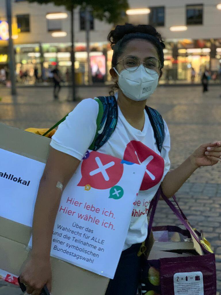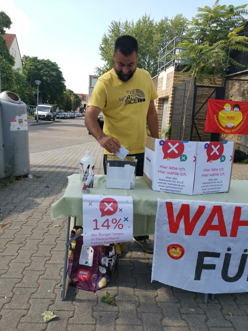 Dedekeloğlu nickt. „Was es heißt, wählen zu dürfen, wird einem vor allem bewusst, wenn man es nicht darf“, sagt er. Alibabanezhad Salem ergänzt: „Wir wollen bei der Symbolischen Wahl Menschen das Gefühl vermitteln, was es bedeutet, vielleicht zum ersten Mal überhaupt in eine Wahlkabine zu gehen und frei, geheim und gleichberechtigt zu wählen.“