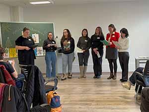 Die Gruppe bestand überwiegend aus Teilnehmerinnen, deren Muttersprache nicht Deutsch ist, und ein besonderes Highlight war, dass diese Teilnehmerinnen ihre Arbeiten vollständig auf Deutsch präsentierten. Mit einer Wand aus Fotos, Plakaten und persönlichen Botschaften sowie einem bewegenden Projektfilm nahmen die Teilnehmerinnen ihre Gäste mit auf ihre ganz eigene Reise. Jede Geschichte erzählte von Herausforderungen, von ersten Erfolgen und von Momenten, in denen man plötzlich spürt: Ich kann das.