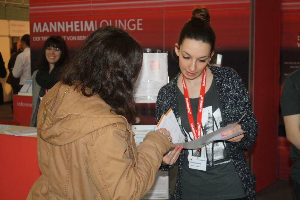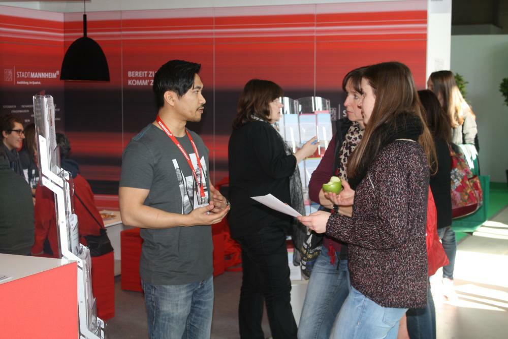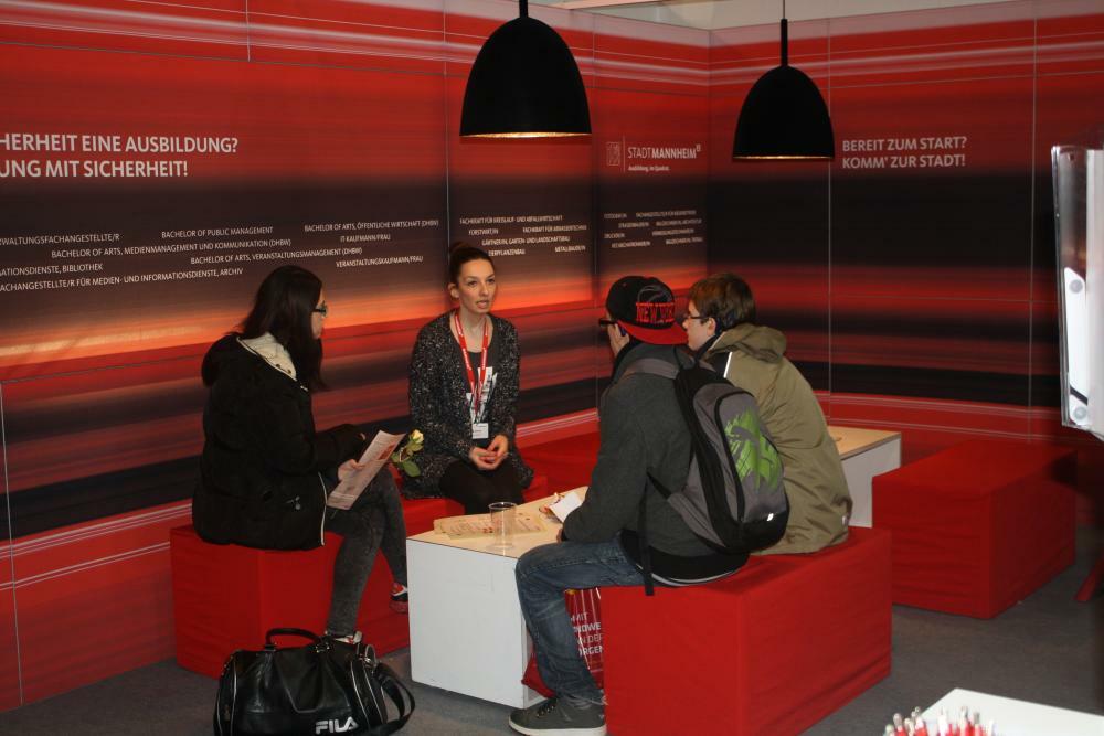 Von den klassischen Verwaltungsberufen über gewerblich-technische Ausbildungsgänge und der Ausbildung zum/zur Erzieher/in bis hin zu Jobangeboten konnten sich so alle Interessenten umfassend am Messestand der Stadt Mannheim beraten lassen und Infomaterial mit nach Hause nehmen.