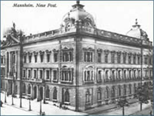 Um das Postwesen ist es im Mannheim des 17. Jahrhunderts schlecht bestellt, weil es in der Stadt noch keine Posthalterei gibt. Mit dem Aufstieg zur Residenz werden auch die Postverhältnisse besser. In neuen Verträgen zwischen der Kurpfalz und der Thurn und Taxis’schen Reichspost wird festgelegt, dass die regelmäßigen Postrouten nun auch über Mannheim führen, das dadurch u.a. mit Berlin, Wien, München und Basel verbunden wird. Man unterscheidet zwischen fahrenden Posten, also Postkutschen, die beim Gasthaus „Zum Goldenen Pflug“ in F 2 starten, und der Briefpost, deren Posthalterei sich in O 2, 4 befindet. Das Quadrat O 2 bleibt bis heute ein Stammplatz der Post in Mannheim. 1837 hat das Postamt seinen Sitz an den Planken in dem Eckhaus O 2, 6-7. Dieses wird zwischen 1880 und 1882 durch ein neues, größeres Gebäude ersetzt. Zwischen 1900 und 1903 folgt eine Erweiterung in Richtung Paradeplatz. Nach schwerer Zerstörung im 2. Weltkrieg wird 1957 der heutige Bau erstellt, der inzwischen unter Denkmalschutz steht.