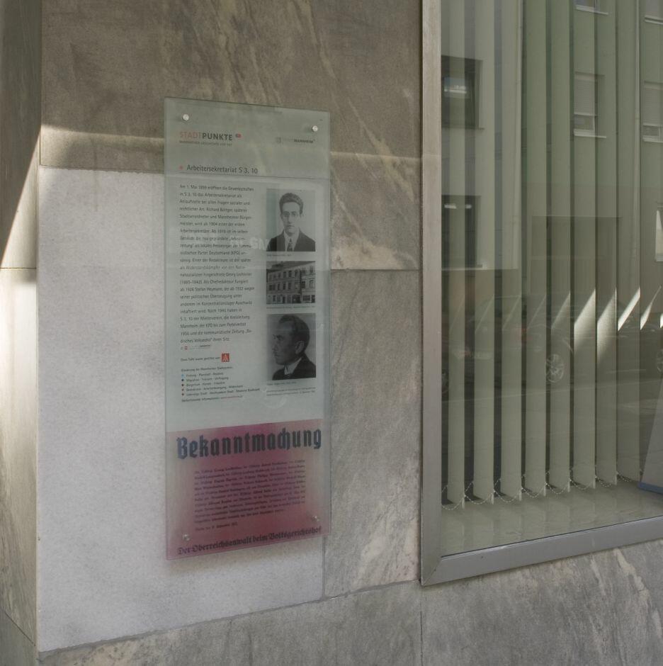 Am 1. Mai 1899 eröffnen die Gewerkschaften in S 3, 10 das Arbeitersekretariat als Anlaufstelle bei allen Fragen sozialer und rechtlicher Art. Richard Böttger, späterer Stadtverordneter und Mannheimer Bürgermeister, wird ab 1904 einer der ersten Arbeitersekretäre. Ab 1919 ist im selben Gebäude die neu gegründete „Arbeiterzeitung“ als lokales Presseorgan der Kommunistischen Partei Deutschland (KPD) ansässig. Einer der Redakteure ist der später als Widerstandskämpfer von den Nationalsozialisten hingerichtete Georg Lechleiter (1885-1942). Als Chefredakteur fungiert ab 1926 Stefan Heymann, der ab 1933 wegen seiner politischen Überzeugung unter anderem im Konzentrationslager Auschwitz inhaftiert wird. Nach 1945 haben in S 3, 10 der Mieterverein, die Kreisleitung Mannheim der KPD bis zum Parteiverbot 1956 und die kommunistische Zeitung „Badisches Volksecho“ ihren Sitz.