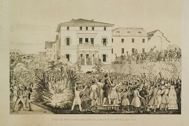 Der Mehlhändler Valentin Streuber wird im Jahr 1848 vom Mannheimer Gemeinderat mit dem Amt des städtischen Mehlwaagmeisters betraut, nachdem die großherzoglich-badische Kreisregierung im November 1847 die Bestätigung seiner Wahl zum zweiten Bürgermeister abgelehnt hat. Dem vorausgegangen ist ein zäher gesellschaftlicher Aufstieg. Als langjähriger Gemeinderat zählt Streuber zu den Führern der vormärzlichen Opposition in Mannheim. Er und seine Anhänger werden von ihren Gegnern spöttisch als „Mehlhändlerpartei“ bezeichnet. Er ist Gründungsmitglied der hiesigen deutschkatholischen (heute freireligiösen) Gemeinde. Als deren Vorsitzender tritt er allerdings zurück, als er im Frühjahr 1848 zum Hauptmann der Bürgerwehr ernannt wird. Denn er fürchtet, dass er als „in Gefängnissen herumgeschleifter Republikaner“ der Gemeinde schaden könnte. Nach der Niederschlagung der Revolution wird Streuber als „Rädelsführer der revolutionären Bestrebungen von 1848/49“ vom preußischen Standgericht, das im alten Kaufhaus in N 1 tagt, zum Tode verurteilt und am 11. Oktober 1849 standrechtlich erschossen.
