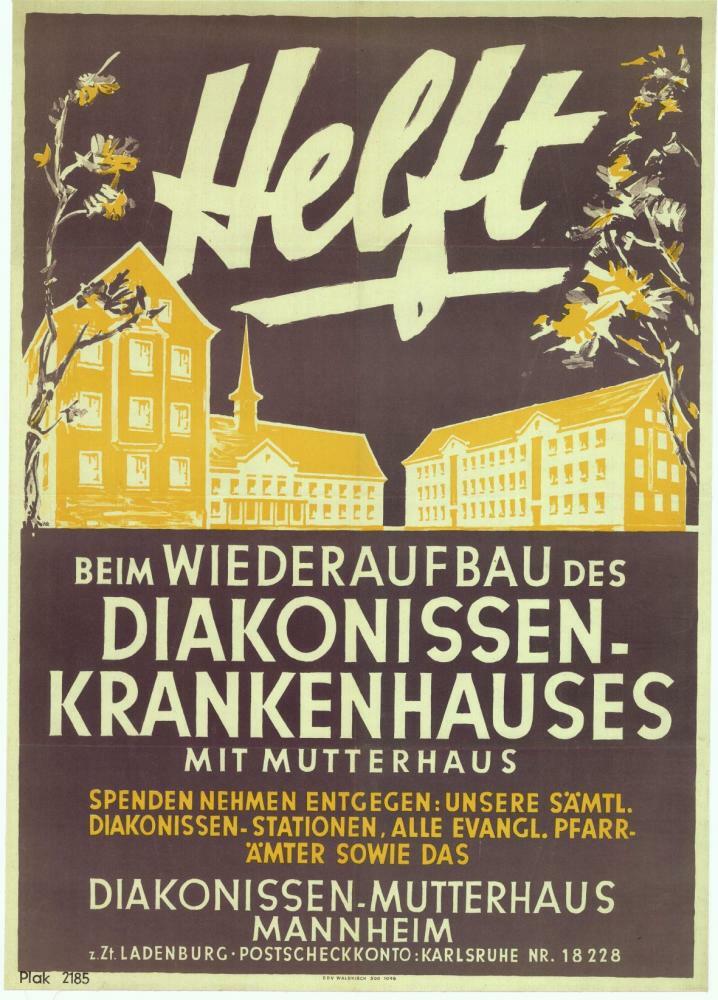 Das erste Diakonissenhaus in Deutschland wird 1836 gegründet. Junge Frauen verpflichten sich zu einer verbindlichen evangelischen Lebens-, Glaubens- und Dienstgemeinschaft und erlernen einen anerkannten Beruf. In Mannheim wird 1861 ein „Evangelischer Verein für Krankenpflege durch Diakonissen“ ins Leben gerufen. 1867 nimmt in F 7 zunächst ein von Karlsruher Diakonissen betreutes Kinder-Hospital seine Arbeit auf. Daraus entwickelt sich ein eigenständiges Mutterhaus. 1884 wird in dem neu gebauten Diakonissenhaus auch ein Krankenhaus für Erwachsene eröffnet. Daneben betreut das Mutterhaus Gemeindestationen in Stadt und Land und betreibt unter dem Namen „Marthahaus“ die „Herberge für stellenlose unbescholtene Mädchen“, zunächst in U 1, 14, später in F 7, 19. Auch ein Kindersolbad in Bad Rappenau und ein Erholungsheim in Bad Herrenalb stehen unter Mannheimer Leitung. Im 2. Weltkrieg werden die Gebäude in F 7 zerstört. 1961 kann ein Neubau an der Speyerer Straße bezogen werden. Nach der 1999 erfolgten Fusion mit dem Heinrich-Lanz-Krankenhaus setzt das Diakoniekrankenhaus die Tradition der Diakonissen fort. Das Mannheimer Mutterhaus ist seit 2004 Teil der Evangelischen Diakonissenanstalt Speyer-Mannheim.