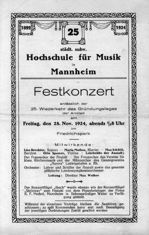 Das ehemalige Verwaltungsgebäude der Siemensniederlassung wird Anfang der zwanziger Jahre von dem engagierten Berliner Architekten Hans Hertlein (1881-1963) entworfen. In den Jahren 1988-1991 nach Plänen von Andreas Plattner umgebaut, residiert hier seither die heutige Staatliche Hochschule für Musik und Darstellende Kunst Heidelberg-Mannheim. Sie ist die Nachfolgerin zweier Ende des 19. Jahrhunderts in beiden Städten entstandener Konservatorien. Das ab 1899 von der Stadt mitfinanzierte Mannheimer Institut mit Opern- und Schauspielschule sowie einem Musiklehrerseminar steht in einer langen Tradition: Bereits 1776 gründete Abbé Georg Joseph Vogler (1748-1784) unter Kurfürst Karl Theodor (1724-1799) die Mannheimer Tonschule. Die Verstaatlichung der Hochschule 1971 befördert den Strukturwandel und bietet vor allem den Studierenden umfassendere Ausbildungsmöglichkeiten.
