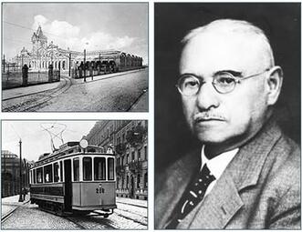 Mit der Einführung der Straßenbahn im Jahr 1900 wird auch das städtische Straßenbahnamt ins Leben gerufen, das 30 Jahre lang unter Leitung des agilen Ottokar Löwit (1864-1945) steht. Noch im gleichen Jahr (1900/01) wird ein repräsentativer Betriebshof unter Leitung von Gustav Uhlmann (1851-1916) vom städtischen Hochbauamt errichtet. Bereits elf Jahre später wird die Anlage um eine vierte Straßenbahnhalle und einen Verwaltungsbau erweitert, für die Richard Perrey (1866-1937) vom städtischen Hochbauamt verantwortlich zeichnet. Im 2. Weltkrieg schwer beschädigt und schließlich nur noch als Hauptwerkstätte genutzt, weicht der Bau 1971 dem Büro- und Wohnhauskomplex des Collini-Centers, der 1975 fertiggestellt wird. In unmittelbarer Nachbarschaft wird ab 1962 das Gewerkschaftshaus errichtet, das 1993 bis 1995 umgebaut wird.