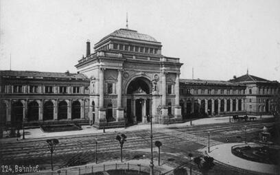 Der Mannheimer Hauptbahnhof befindet sich seit 1876 an dieser Stelle, die damals noch außerhalb des bebauten Stadtgebiets liegt . Seine Verlagerung vom Tattersall hierher hängt mit dem Bau der 1868 eröffneten festen Rheinbrücke nach Ludwigshafen zusammen, die Straßen- und Eisenbahnbrücke in einem ist. Das Bahnhofsgebäude wird mehrfach umgebaut: 1927 bis 1929 wird die Kuppel entfernt, die der „Neuen Sachlichkeit“ der 1920er Jahre nicht mehr entspricht. Bei der letzten Sanierung des Hauptbahnhofs am Anfang des 21. Jahrhunderts entsteht sie als Glaskuppel neu. Als Bahnknotenpunkt, den er bis heute darstellt, ist der Mannheimer Hauptbahnhof nicht nur in Friedenszeiten ein Tor in alle Welt mit direkten Verbindungen nach Paris, Basel oder Berlin und Hamburg. Im 1. Weltkrieg machen die Züge mit Soldaten für den Stellungskrieg in Frankreich hier Halt ebenso wie die Lazarettzüge mit den dort Verwundeten. Im 2. Weltkrieg werden sowohl die Deportation der badischen Juden nach Gurs 1940 mit der Bahn durchgeführt als auch 1942 deren weitere Verschleppung, die über das Sammellager Drancy bei Paris in die Vernichtungslager im Osten führt. Die Züge aus Drancy passieren auch den Mannheimer Hauptbahnhof.