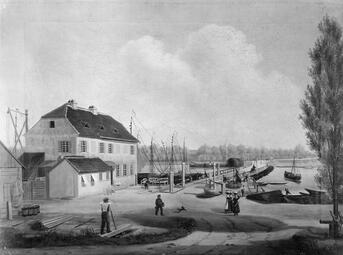 Um eine Anbindung an die großen Handelsstraßen zu Land und Wasser zu haben, gilt es seit der Gründung der Stadt 1607 nicht nur, Rhein und Neckar zu befahren, sondern sie auch zu überqueren. So gibt es schon in der ersten Hälfte des 17. Jahrhunderts eine Schiffsbrücke über den Neckar. Hierbei handelt es sich um aneinander befestigte Nachen, über die ein Brückensteg führt. Um Schiffe oder Flöße passieren zu lassen, muss der Übergang an bestimmten Stellen geöffnet werden. Hochwasser oder Eisgang richten oft Schäden an den Brückennachen an, zwingen bisweilen sogar zum vorübergehenden Abbau der Konstruktion. Bei Kriegsgefahr kann die Brücke schnell beseitigt und der Zugang zur Stadt erschwert werden. Im Pfälzischen Erbfolgekrieg 1688/89 dient die Neckar-Schiffsbrücke als Fluchtweg aus der Stadt. Scharen von Hugenotten überqueren sie, um sich vor den anrückenden französischen Truppen in Sicherheit zu bringen. Einst waren die in Frankreich unterdrückten Protestanten mit großen Hoffnungen nach Mannheim gezogen. Nun müssen sie ihre neue Heimat wieder verlassen. Das Ziel der meisten ist Magdeburg.
