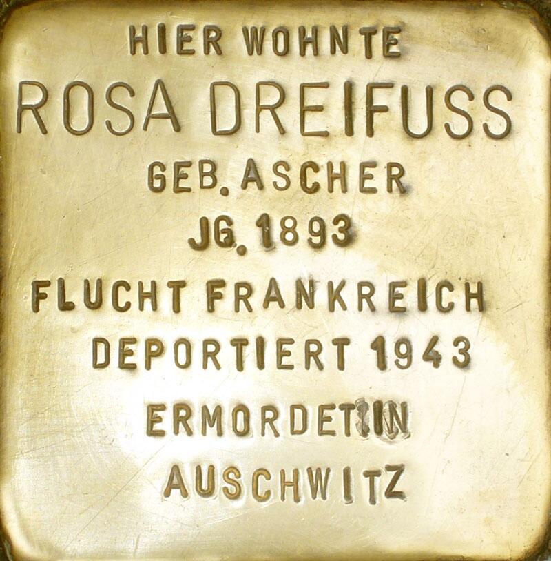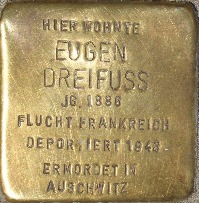 - Eugen und Rosa Dreifuss wurden aus Vichy Frankreich ausgewiesen und zusammen mit anderen Flüchtlingen am 18.9.1943 in Italien im Tal Gesso von deutschen Truppen festgenommen, zunächst interniert und dann zurück nach Frankreich abgeschoben. Die Deportation erfolgte dann von Nizza aus über Drancy, das große Sammellager bei Paris, nach Auschwitz, wo beide ermordet wurden.