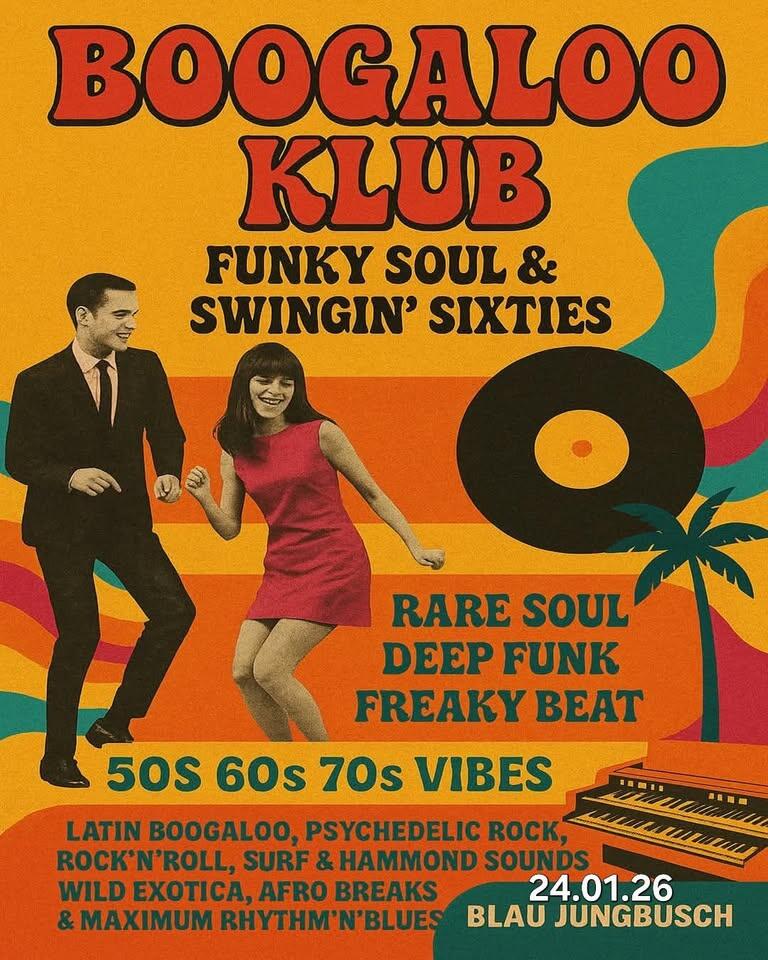 Treibende Beats, fauchende Orgeln, funky Gitarren und Gesangslinien, die an die Seele rühren - das ist der Boogaloo Klub. Die besten Tracks aus den Untiefen der 50er, 60er und 70er Jahre.