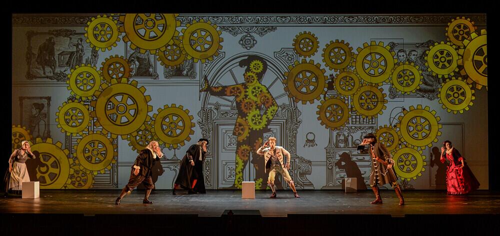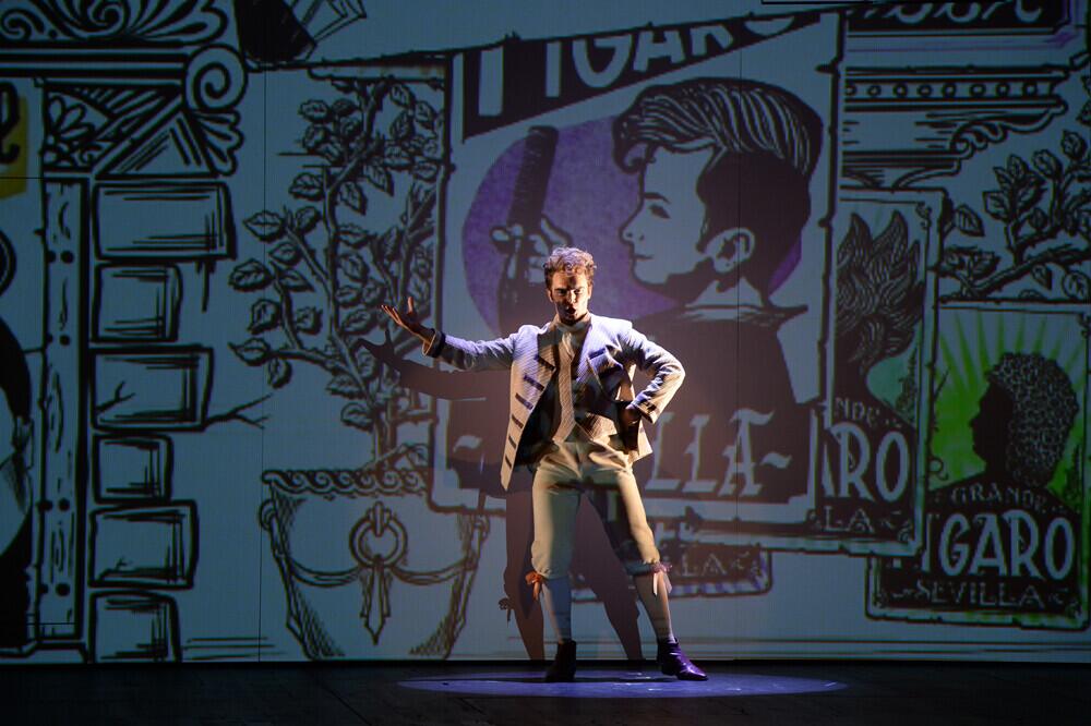 Er steckt voller Ohrwürmer, treibender Rhythmen und geradezu berauschender Vokalartistik: Im Mittelpunkt von Maren Schäfers Inszenierung von »Der Barbier von Sevilla« steht Rosina, die sich aus ihrer Gefangenschaft befreit und beginnt, ihr eigenes Leben zu leben. Angeregt durch Charaktere und Typen der italienischen Komödie, lässt Ernesto Lucas HO Rossinis Sevilla in handgezeichneten Animationen lebendig werden. Nach ihrem Debüt als kompakte 90-Minuten-Fassung in Pandemiezeiten präsentiert sich »Der Barbier von Sevilla« nun in erweiterter Form – weiterhin im klaren White-Wall-Opera-Format, aber mit noch mehr Zeit für Rossinis musikalische Raffinessen.