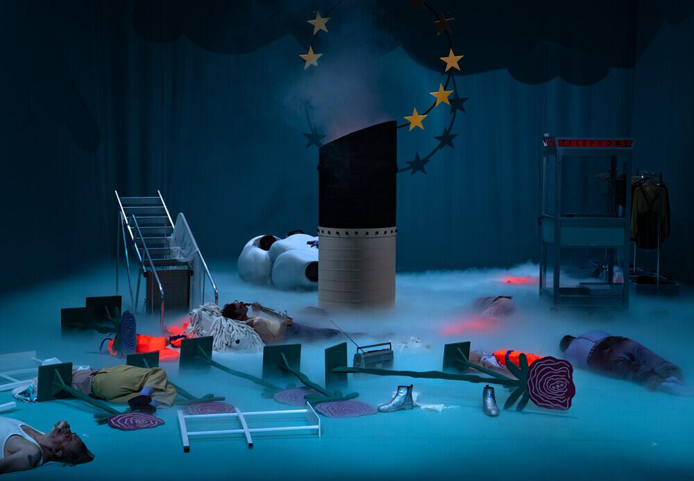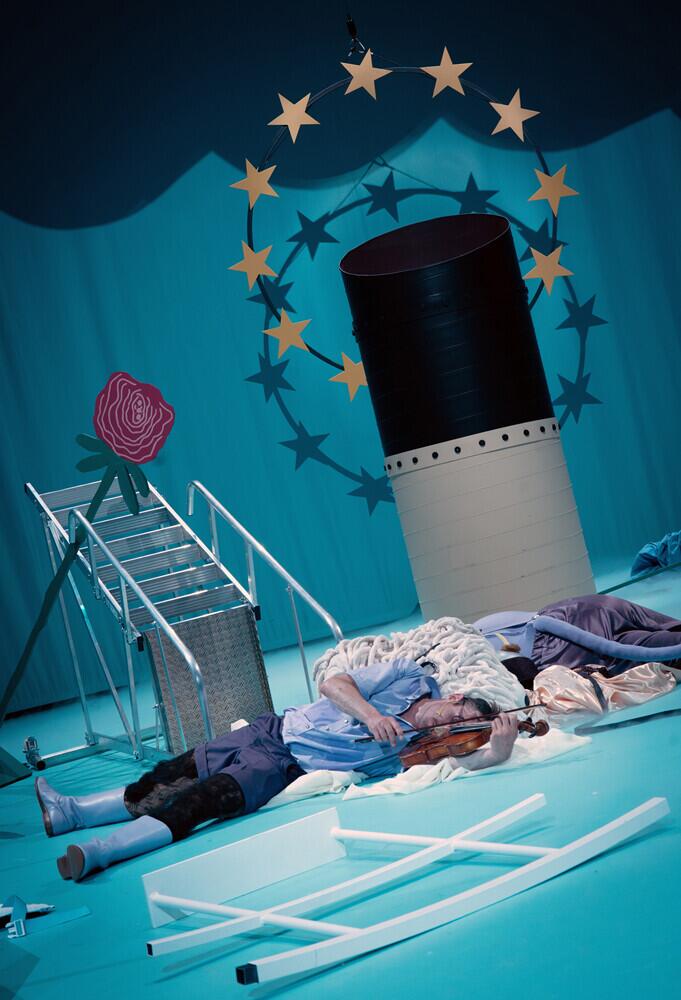 Während die Menschen auf dem »europäischen Dampfer« der Dekadenz frönen, steuert dessen Bug auf die Wirklichkeit zu. Wie wirkt sich das auf die Biografien, Sehnsüchte, Träume und Hoffnungen der Menschen aus? Wie wird sich das europäische Projekt weiterentwickeln? Inspiriert von Fellinis Film »Schiff der Träume« adaptiert Anna-Elisabeth Frick Menasses Bestseller, der 2023 den europäischen Buchpreis gewann, für die Bühne. Inhaltliche und sensorische Hinweise: In der Inszenierung wird Stroboskoplicht eingesetzt. Außerdem wird Selbsttötung thematisiert.