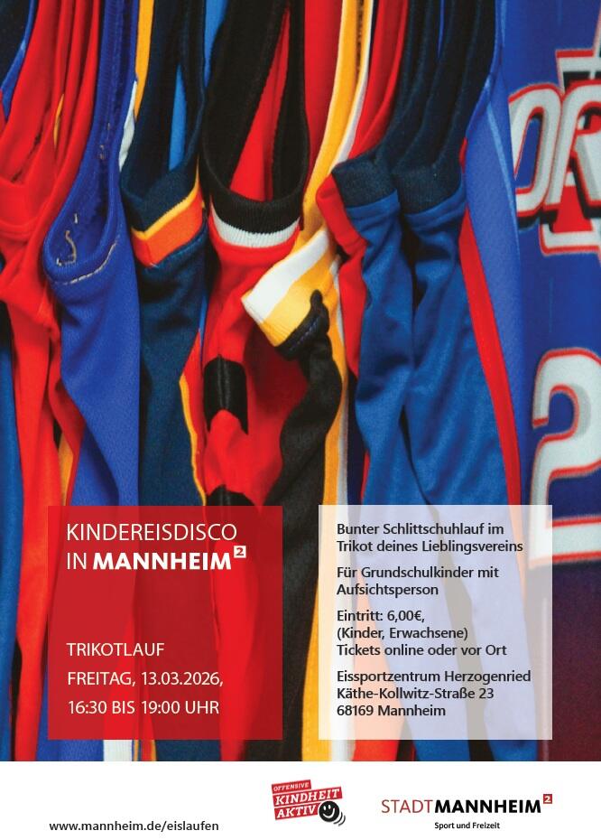 Am Freitag, den 13.03. findet von 16.30 bis 19 Uhr die letzte Kindereisdisco in dieser Eislaufsaison unter dem Motto „Trikotlauf" statt.