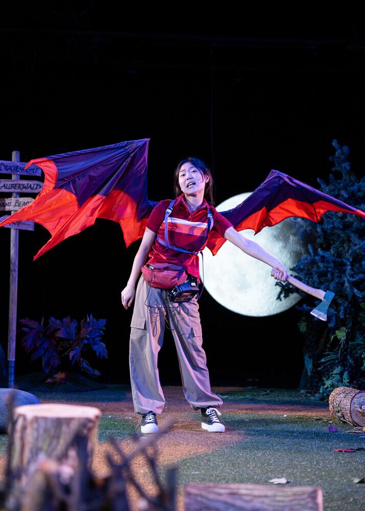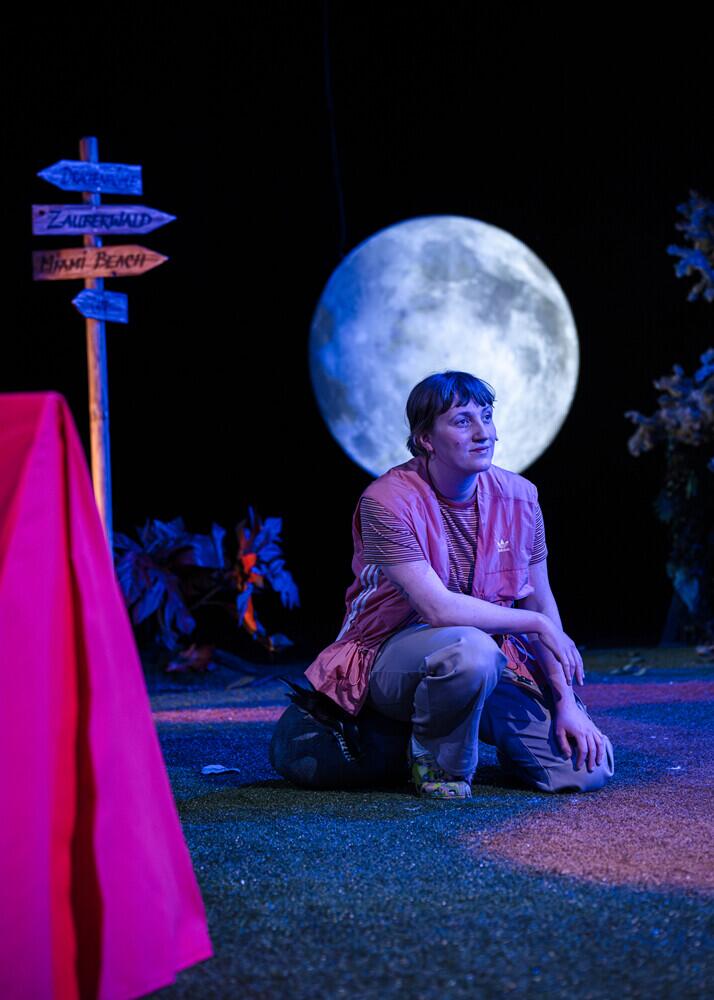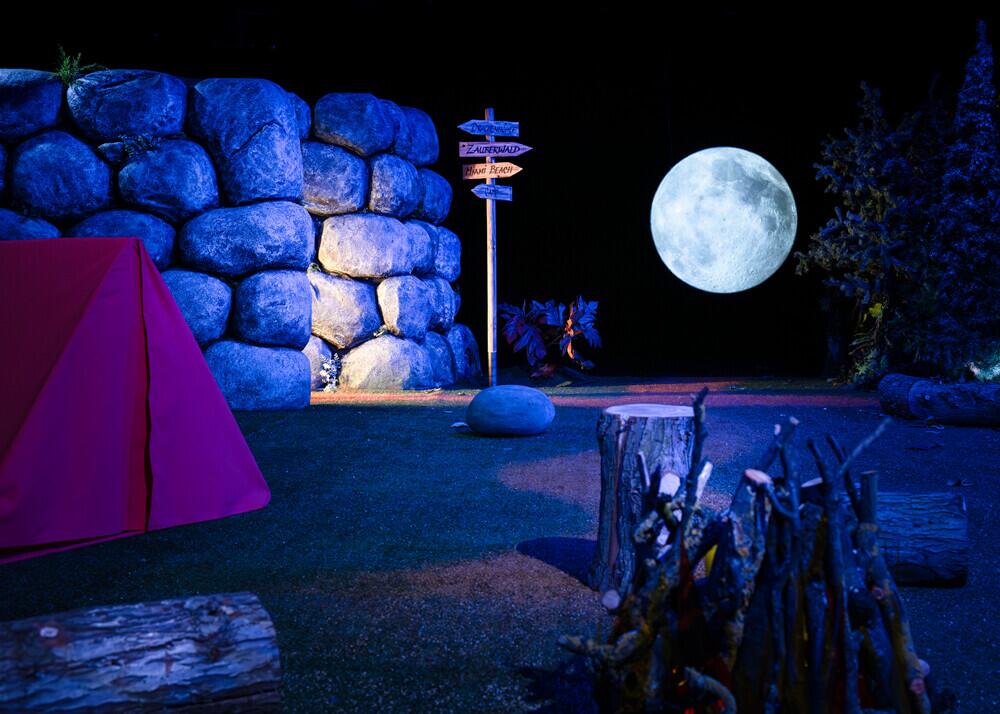 Sommer. Sonne. Ferienlager. Wer kennt es nicht? Mindestens aus dem Fernsehen. In der einen Ecke steht ein Nadelwald, in der anderen ein kleiner Vulkan. Ein Lagerfeuer. Und um das Feuer Figuren, die sich gegenseitig erzählen, was so los war. Letztes Schuljahr oder irgendwann. Die Lehrer*innen, die Eltern oder schlimmer: das gebrochene Herz. Es sind die monstermäßigen Probleme des Erwachsenwerdens, die hier in der nächtlichen Dunkelheit verhandelt werden. Moment: Was passiert da plötzlich mit den Figuren? Verwandeln sie sich in Drachen? Oder sieht das im Schein des Lagerfeuers nur so aus? So oder so. Sie sind füreinander da. Denn alle Probleme sind echte Probleme und echte Ferienlagerfreund*innen sind dafür da, diese Probleme in Angriff zu nehmen. Dabei merken sie, dass eine Maskerade vielleicht nur bis zu einem gewissen Grad hilfreich ist und sich manchen Problemen gestellt werden muss. Zusammen mit dem Ensemble des Jungen Nationaltheaters schreiben und entwickeln James & Priscilla eine popmusikalische Coming-of-Age-Fantasie für die unausgelebten Rollen in uns allen.