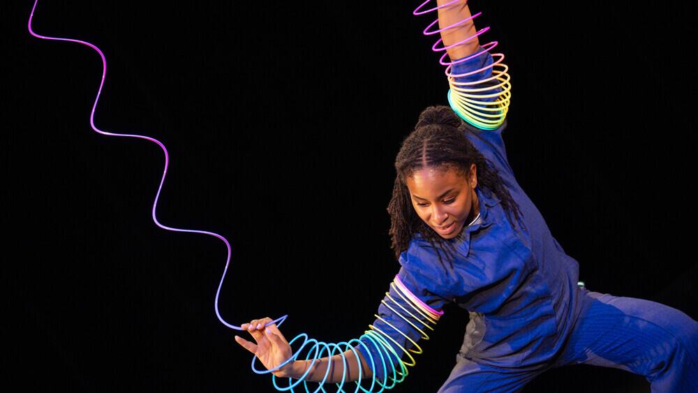 Federn fliegen. Vogelfedern zum Beispiel. Federn wippen. Mechanische Federn sind das. Wenn man genau hinsieht, merkt man erst: Was es alles für Federn gibt! Und was sie alles können! Federn können aussehen wie Spiralen. Dann sind sie dehnbar und irgendwie verdreht oder am Drehen. Bei genauerem Hinsehen merkt man überhaupt erst, was es alles für Federn gibt und was sie alles können. Nämlich wippen, fliegen, elastisch sein, schnellen, hinschwingen, herschwingen, vorschwingen, zurückschwingen, dämpfen, polstern und eben: federn. So viele Eigenschaften. So viel Bewegung. Können Federn dann vielleicht auch tanzen? Oder können Menschen tanzen wie Federn? Oder mit ihnen?