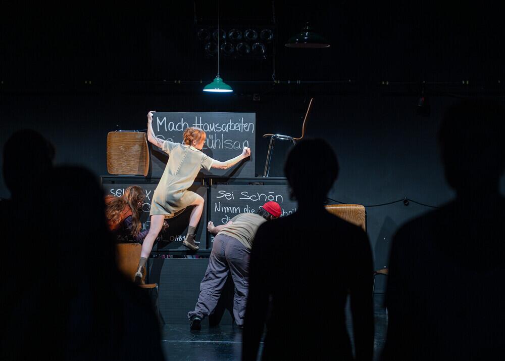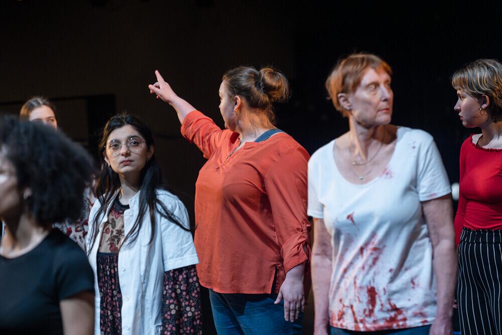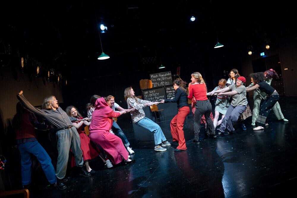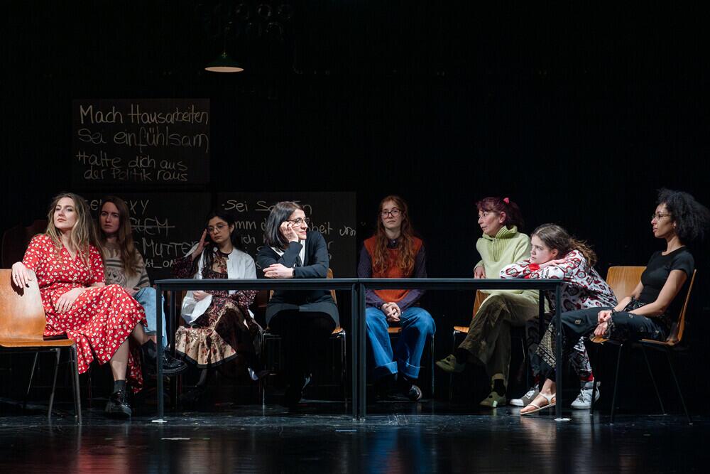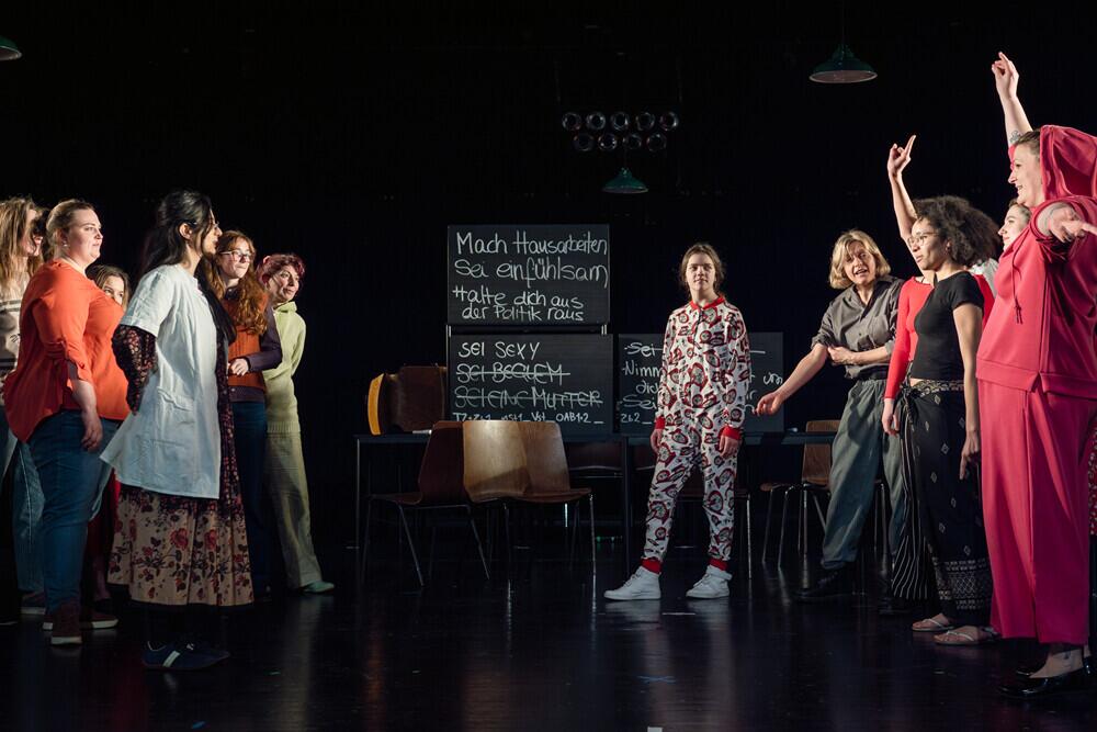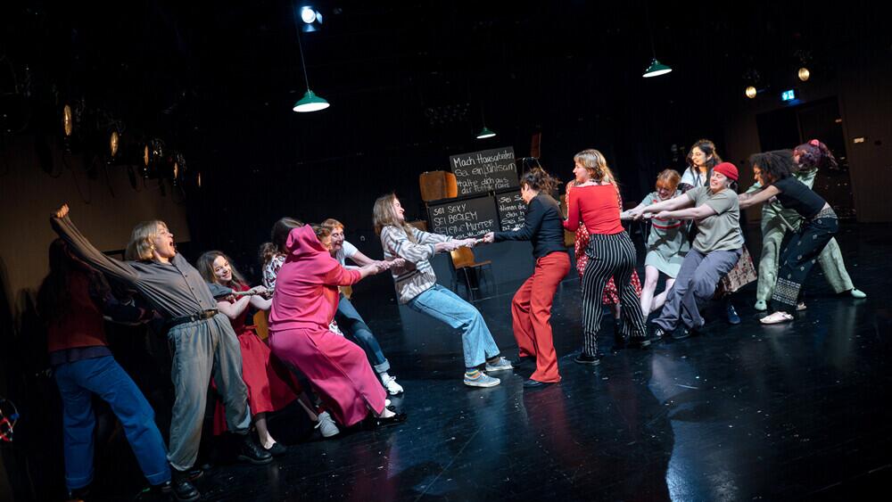 Der Mensch gewinnt im Spiel Erfahrungen. Diese haben, so die Theorie, die Macht individuelle Eigenschaften und Verhaltensweisen einer Person zu formen. Das Spiel birgt also ein großes Potential in sich: Es erschafft nicht nur ein Abziehbild unserer Welt, sondern beinhaltet die Möglichkeit zur Erprobung einer friedlichen Zukunft. Auch der Krieg spiegelt sich im Spiel wieder, zum Beispiel als Männerdomäne in den Spielen von Jungen: Sie schießen mit Stöcken, kämpfen mit Schwertern und Wasserpistolen. In Ego Shootern und strategische Computerspiele werden Kriege simuliert. Doch wo sind eigentlich die Frauen in diesen Spielen und welche Rollen übernehmen sie in realen Kriegen? Um Antworten auf diese Fragen zu finden, begab sich die Theatermacherin Natasha Borenko in Mannheim auf die Suche nach Geschichten von Frauen, die Krieg erleben mussten, aus Krisengebieten geflüchtet sind und tagtäglich mit den Folgen kämpfen. In den Proben teilten die Frauen unterschiedlicher Generationen ihre Kriegserlebnisse miteinander. In einer Art Forschungslabor erprobten sie Regeln alter Kinderspiele, veränderten diese und erfanden sie schließlich neu. Sie erforschten, wie sich die Veränderung der Spielregeln auf die Realität auswirkt. Entstanden ist ein Theaterabend, der durch die Erkundung von Geschichten und durch das Verändern von Spielen eine neue Welt schafft.