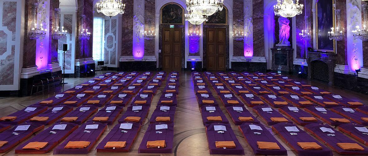 Machen Sie es sich bequem. Ziehen Sie die Schuhe aus. Und dann: Nichts tun. Einfach nur hören. Liegen statt sitzen, lauschen statt scrollen, spüren statt Grübeln. Die Traumkonzerte im Schloss sind keine klassischen Konzerte, sondern 60 Minuten bewusstes Innehalten. Nur Klang, Licht und Sie selbst – eingebettet in eine beruhigende Umgebung, die das Tempo der Welt für einen Moment stillstehen lässt. Das alles im traumhaften Rahmen des prachtvollen Rittersaals im Mannheimer Schloss mit einem Deckengemälde, das Sie im Liegen besonders gut bestaunen können. Wer möchte, kann mit einem Getränk in den Abend starten.