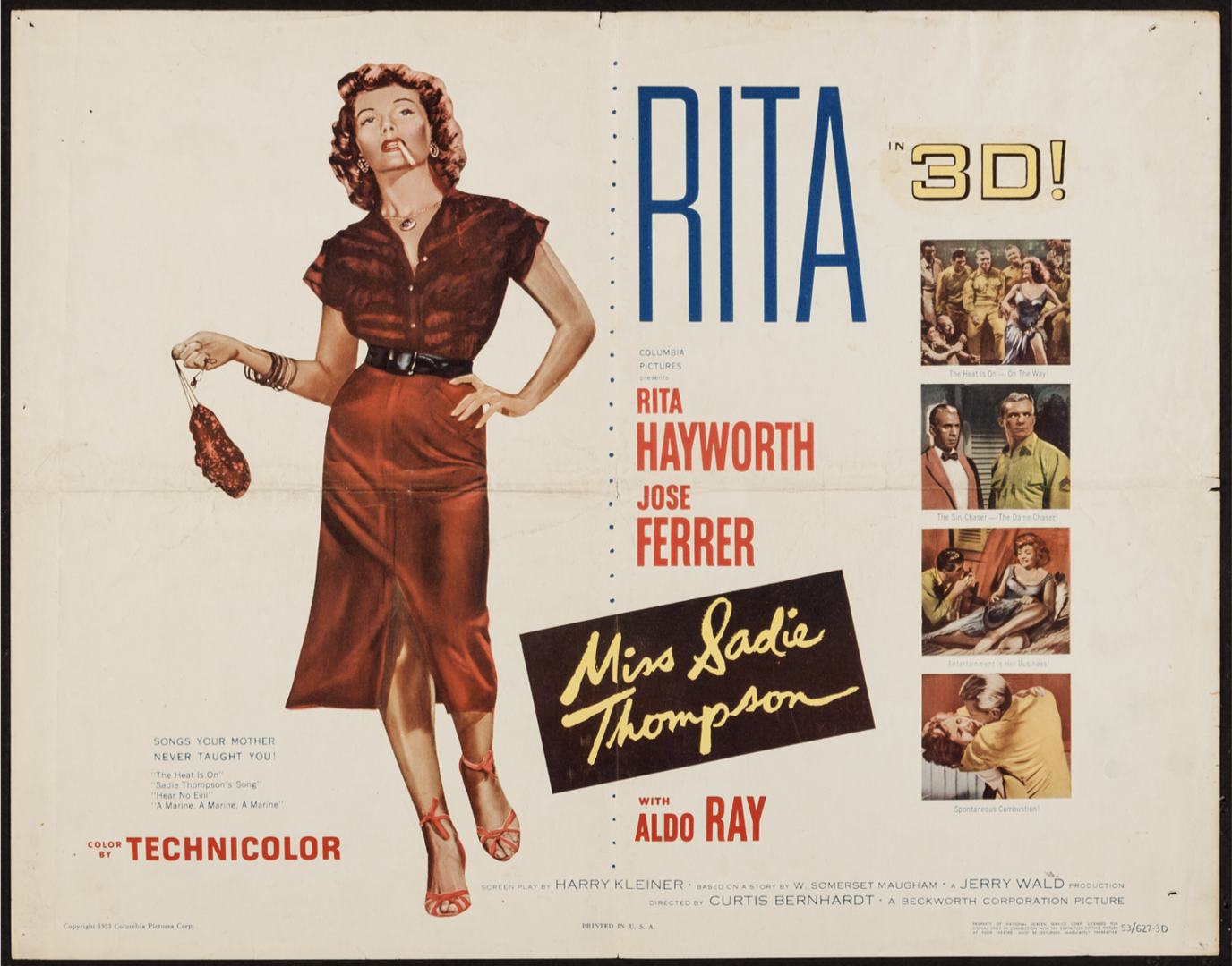 Der 3D-Film in Technicolor besticht durch die Farben (das Rot von Rita Hayworths Kleidern und Haaren!) und durch die sensiblen dreidimensionalen Effekte (die Träne in ihrem Auge!). Die Protagonistin in W. Somerset Maughams Kurzgeschichte „Miss Thompson“ ist eine Prostituierte; für den Film wurde diese literarische Vorlage bereits bereits stark entschärft. Dennoch galt Hayworths Tanz zu „The Heat is On“ vielen konservativen Zuschauern immer noch als zu anstößig für die Leinwand.