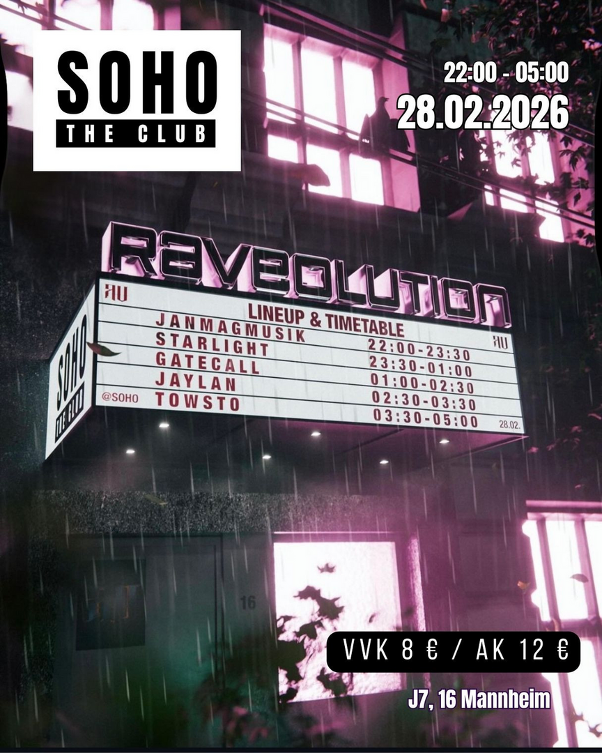 RAVEOLUTION präsentiert: Eine Nacht voller Groove, Hardtechno & Schranz im SOHO Mannheim ??? Abendkasse nur 12 € – komm vorbei und dreh mit uns durch!?