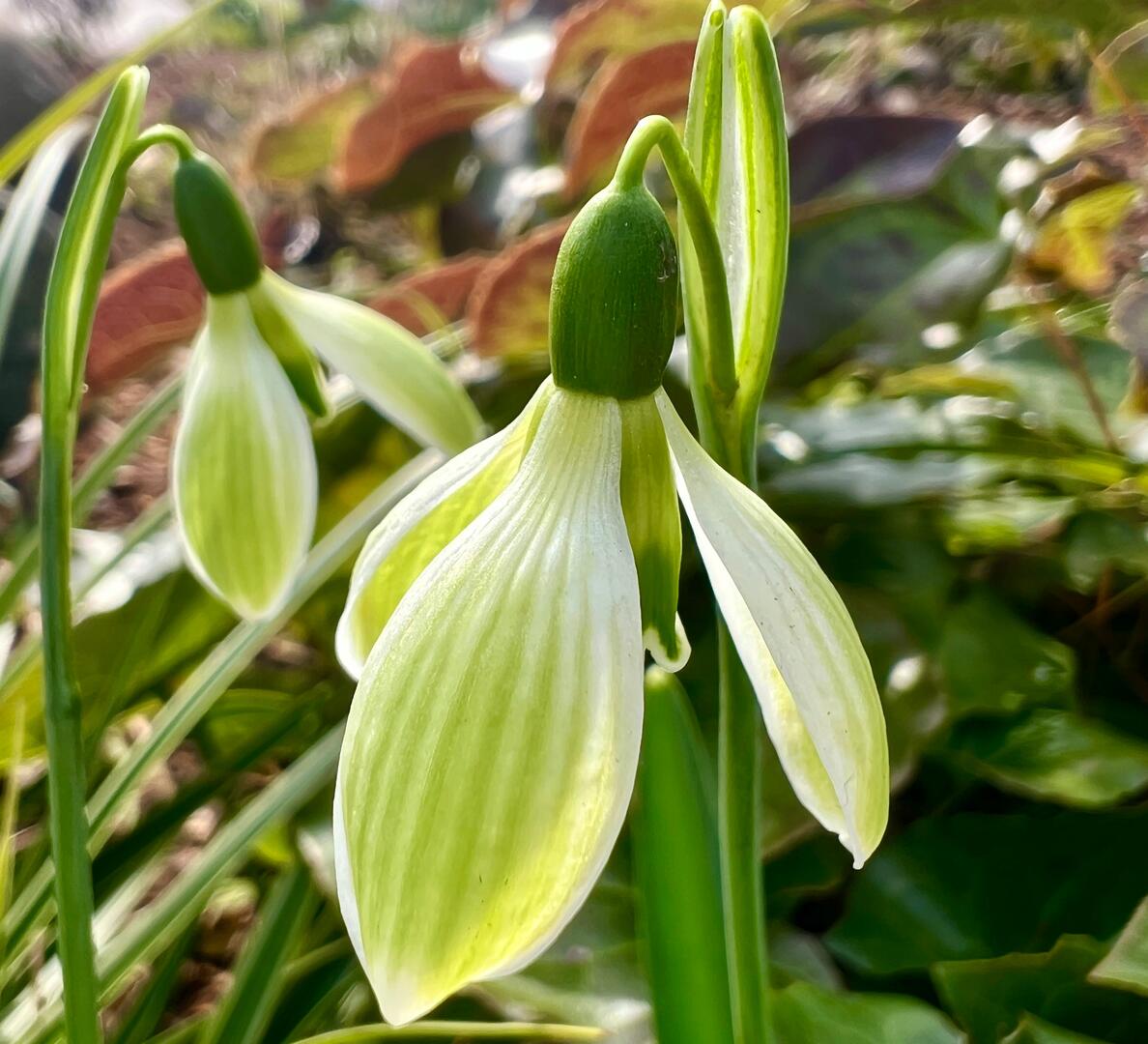 Fast mystisch klingen die Namen der Pflanzen, die den 'galanthus' Geleit geben. Bekanntere Spezies wie Krokusse aller Art, Narzissen, Lilien, Lenzrosen, Christrosen, Winterlinge, Pfingstrosen, Leberblümchen, Primeln, Aurikeln, Dahlien, winterblühende Gehölze, Farne, Bergenien, Erdorchideen, Alpenveilchen, Lerchensporn, Waldlilien, Polsterstauden, Iris, und die klassischen Märzenbecher werden ebenfalls präsentiert. Star bleibt natürlich das Schneeglöckchen...