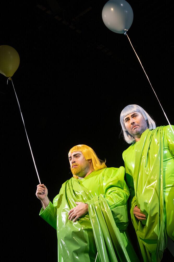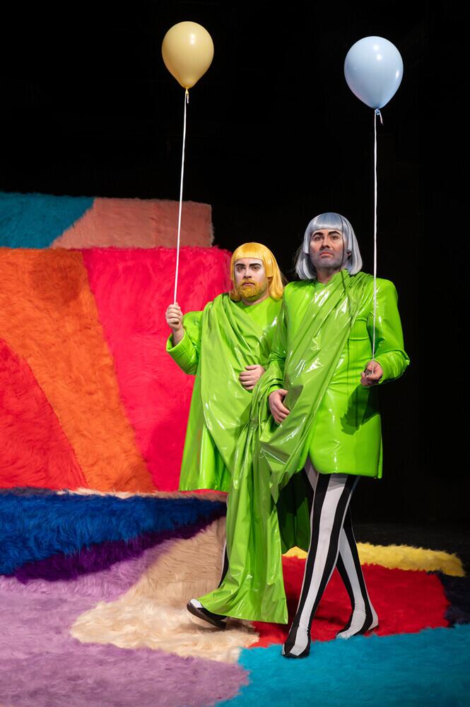 Mit Athens Demokratie steht es nicht zum Besten: Betrug und Misswirtschaft allerorten. Nein, das ist kein Leben, entscheiden zwei seiner (allerdings nicht weniger korrupten) Bürger. Sie machen sich auf zu einem besseren Ort, den sie sich im Reich der Vögel imaginieren und landen in einem bizarren Wolkenkuckucksheim unserer Gegenwart. Mit leichter Hand kombiniert die junge Regisseurin Melanie Schmidt zwei gefiederte Komödien - »Die Vögel« von Aristophanes und »Bookpink« von Caren Jeß - zu einem bunten Panoptikum über den leidigen Unterschied zwischen Wunsch und Wirklichkeit. Die Geschichte spielt im Reich der Vögel, welche aber unschwer als menschliche Typen der Jetztzeit zu erkennen sind: Eine esoterische Pute, die andere schuften lässt für’s Eigenheim aus Edelstein, ein auf die schiefe Bahn geratener Dreckspfau, der von eleganten Federn träumt, zwei rebellische Flamingos, die den Ausbruch aus ihrem Käfig planen und eine weiße Taube, die sich auf einem vermüllten Campingplatz hausend nach einem barocken Leben voller Musik und Schönheit sehnt. Mit musikalischer Unterstützung von Jeremy Heiß entsteht eine szenisch-musikalische Revue über menschliche Abgründe im Federkleid. Im Anschluss an die Vorstellung am 15.11. findet unsere »Afterlife« Party statt!