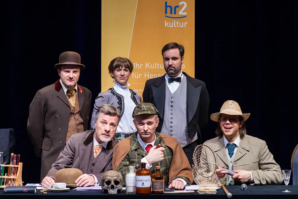 Sein Name ist Holmes, Sherlock Holmes und obwohl die Krimis von Sir Arthur Conan Doyle weltweit schon Millionenauflagen erreichten, ist er aktueller denn je. Egal ob in den TV-Serien „Sherlock", „Elementary" und „Enola Holmes“ oder in den Kinofilmen mit Robert Downey jr. Und jetzt auch im Livehörspiel des hr2-RadioLiveTheaters. „Es ist eine hässliche Angelegenheit, Watson, hässlich und gefährlich, und je mehr ich darüber erfahre, desto weniger gefällt sie mir." - Eine hässliche Angelegenheit ist der Tod von Sir Charles Baskerville. Ist nun auch das Leben seines Erben Sir Henry bedroht? Lastet wirklich ein Fluch auf den Baskervilles? Was hat es mit dem nächtlichen Heulen eines unheimlichen Hundes in Dartmoor auf sich? Sherlock Holmes und sein Assistent Dr. Watson haben es mit einer besonderen Herausforderung zu tun. „Noch nie hatten wir einen Gegner, der unserer Klinge würdiger wäre." Der wohl berühmteste Fall des wohl berühmtesten Detektivs. Aber wer kennt ihn wirklich? Die Antwort liefert das Krimi-Livehörspiel des hr2-RadioLiveTheaters in einem Event für alle Krimifans und Kassettenkinder. Das hr2-RadioLiveTheater, wir leben Hörspiel! Seit 2013 haucht das hr2-RadioLiveTheater in Zusammenarbeit mit hr2-kultur, dem ARD-Hörspiel-Sender in Hessen, rund 20-mal pro Jahr deutschlandweit Hörspiel-Klassikern neues Leben ein. Beim Gastspiel erlebt das Publikum ein eigenes, neu adaptiertes Hörspiel live auf der Bühne und kann dem Team beim „Hörspiel machen“ quasi im mobilen Hörspiel-Studio über die Schulter und hinter die Kulissen schauen. Es sind alle Sinne gefragt, denn die SprecherInnen lassen das Hörspiel mit Musik, Geräuschen, Kostümen, Requisiten und Effekten lebendig werden. Die perfekte Verbindung aus Kino im Kopf und der Magie des Theaters.