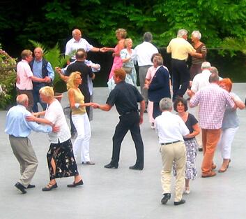 Mit wechselnden Live-Musikern und viel Platz zum Ausruhen und Zuschauen bieten wir unseren Besuchern ein einzigartiges "Tanzparkett": Unter freiem Himmel, gesäumt von Bäumen und jede Menge Raum für Tanzfiguren. Ob Tango, Salsa, Quickstep oder langsamer Walzer: Damen und Herren aller Altersklassen haben erkannt, dass das Tanzen Körper und Geist beflügelt, die Kreativität fördert, den Stress abbaut, ergo glücklich und gesund macht! Mit Tom`s Trio Company klappt das ganz hervorragend.