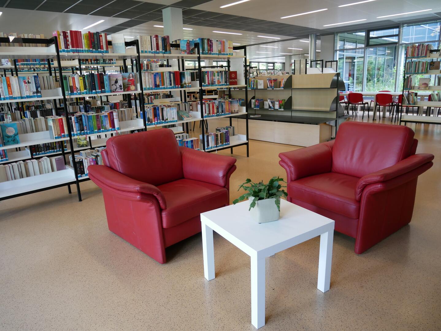 Alle Bereiche der Bibliothek sind ebenerdig zugänglich. Die Regalreihen sind weitestgehend mit Rollstuhl und Kinderwagen befahrbar. In der Bibliothek stehen verschiedene Sitzmöglichkeiten zur Verfügung. Das Bibliothekspersonal unterstützt gerne bei der Orientierung in den Räumlichkeiten.