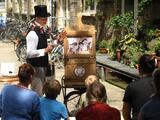 Um 13 und 15 Uhr präsentiert Uwe Mayer mit seinem mobilen Bildertheater die Geschichte der Erfindung des Zweirads.