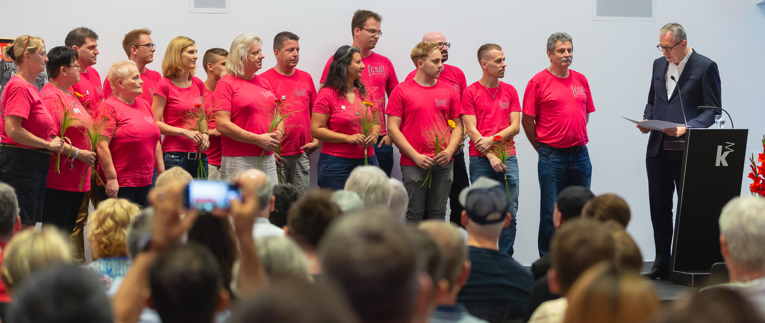 Oberbürgermeister Dr. Peter Kurz ehrte Vorstandsvorsitzenden Harald Blaull (2. v. r.) und das Organisationsteam des Christopher Street Day Rhein-Neckar mit einer Urkunde